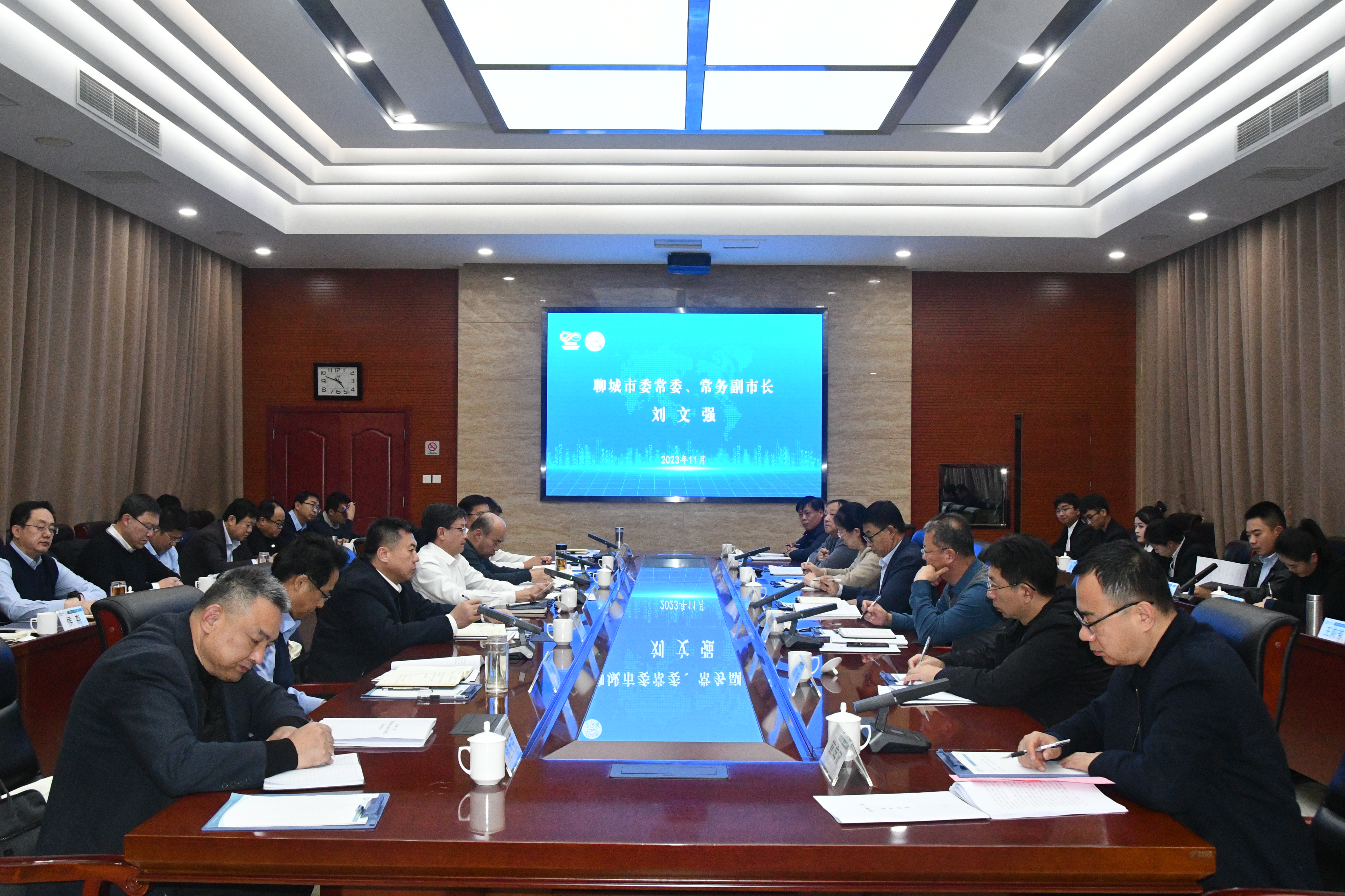 11月13日,聊城市市委常委、常务副市长刘文强一行来今年会调研,校党委常委、副校长赵明吉出席会议,会议由市政府副秘书长、办公室主任侯德功主持。
