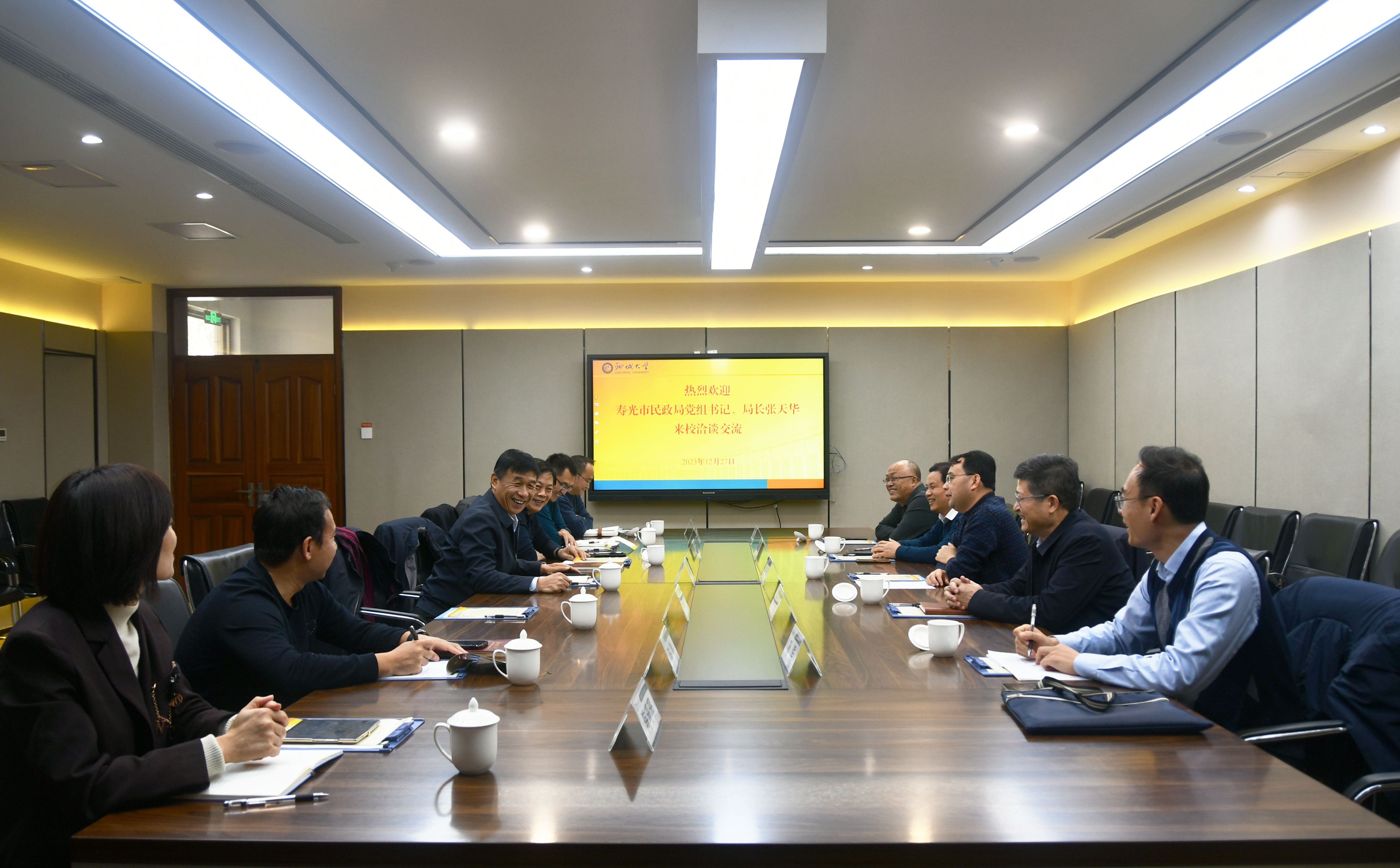 12月27日,寿光市民政局党组书记、局长张天华一行来校洽谈交流,今年会官方网站党委常委、副校长赵明吉在第二会议室与客人进行了座谈。