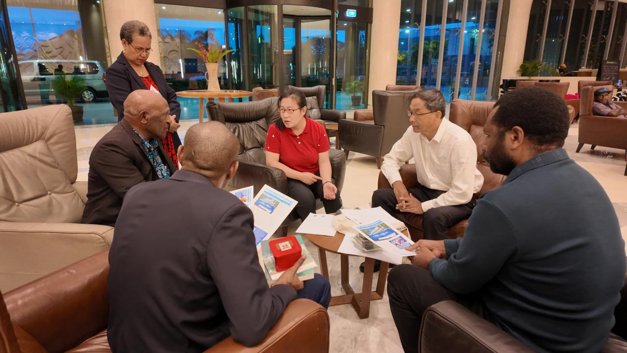 17日,调研小组与巴布亚新几内亚国家气候变化与发展管理局局长威廉姆·拉凯瑞(William Lakain)及该局主要官员进行了交流座谈,就联合开展学术活动等达成了多项共识。