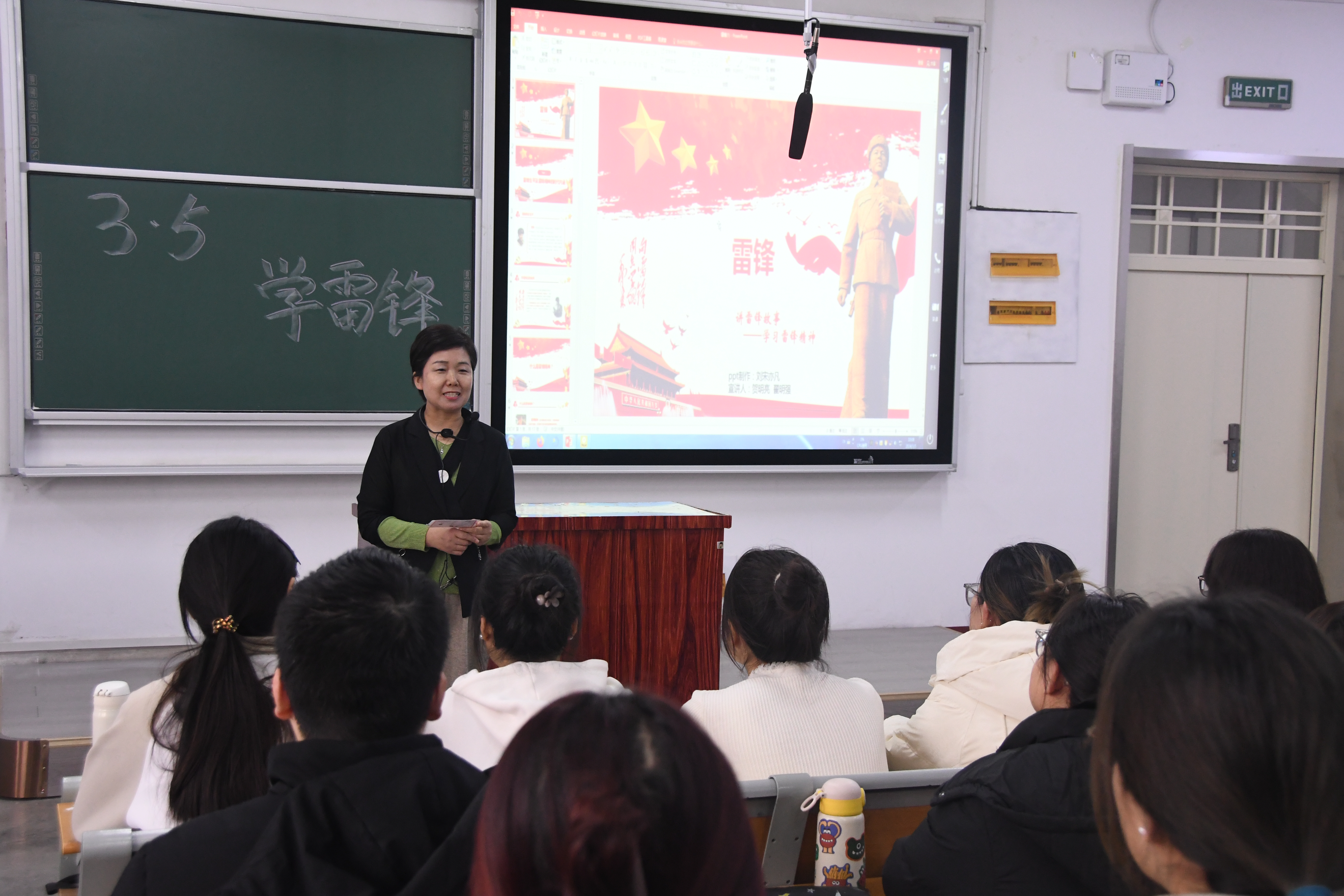 3月5日上午,在地理与环境学院A203教室,学生们起立合唱《学习雷锋好榜样》歌曲,嘹亮的歌声飞向整个校园。在第61个“学雷锋纪念日”到来之际,马克思主义学院教师依照“思政年历”安排,在思政课堂上开展了形式丰富的“学习雷锋好榜样”微思政课主题活动。