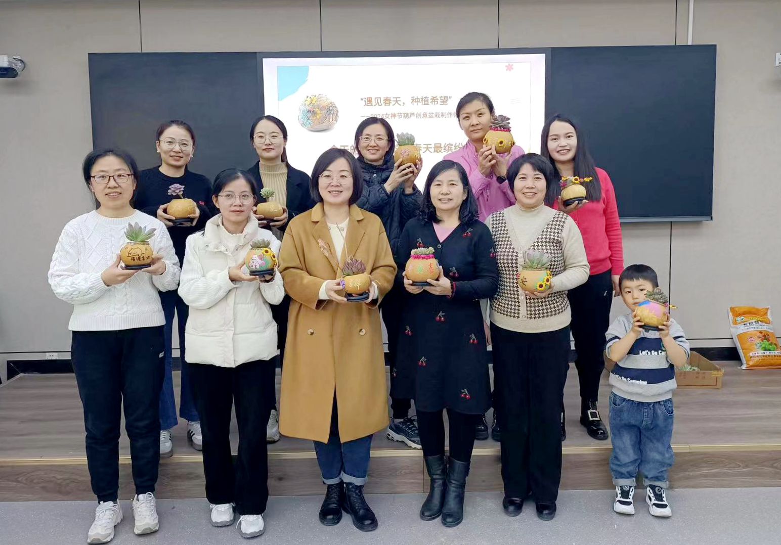 创意焕发“她”魅力。拓染、面塑、剪纸、压花、葫芦盆栽、花艺草帽制作等这些自己动手,发挥创造力、想象力的雅俗共赏的时尚创意DIY活动是这次“三八”节各二级工会主打项目。行政部门工会、农学与农业工程学院联合开展了“妙手生花 尽‘扇’尽美”压花团扇活动,马克思主义学院、美术学院、政治与公共管理学院、图书馆分别开展了拓染沙龙、面塑艺术、非遗剪纸、花艺草帽制作等体验活动,这些寓教于乐的活动使女教工们亲身感受到动手的快乐,放飞了自我,舒缓了生活工作压力;材料科学与工程学院、商学院、生命科学学院等开展了花卉养殖、多肉花篮制作、葫芦创意盆栽等活动,计算机学院、音乐与舞蹈学院举办了花艺沙龙等主题活动,鲜花、盆栽具有节日的独特魅力,轻奢淡雅,花叶共赏,传递着节日的美好与祝福;业务部门工会、数学科学学院组织了教工观影活动,文化大餐渲染了节日氛围,增加了节日“味道”。校工会、妇委会开展学校“书香三八”读书活动,推荐优秀作品参加全国“书香三八”全省“玫瑰书香”女职工阅读优秀作品评选活动,通过征文、家书、书画、摄影、表演等的形式,引导广大女教职工提高自身素质和文化素养。