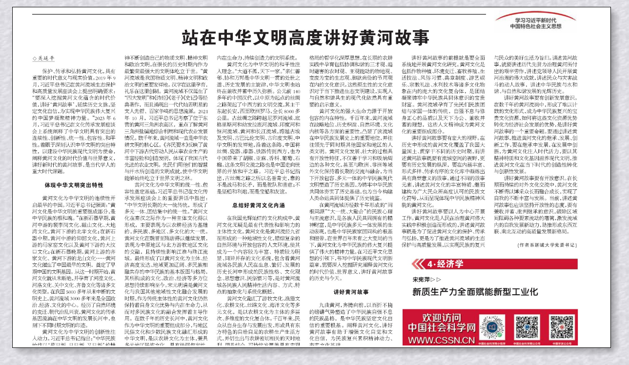 《中国社会科学报》头版刊发今年会官方网站党委书记关延平同志黄河学研究新成果