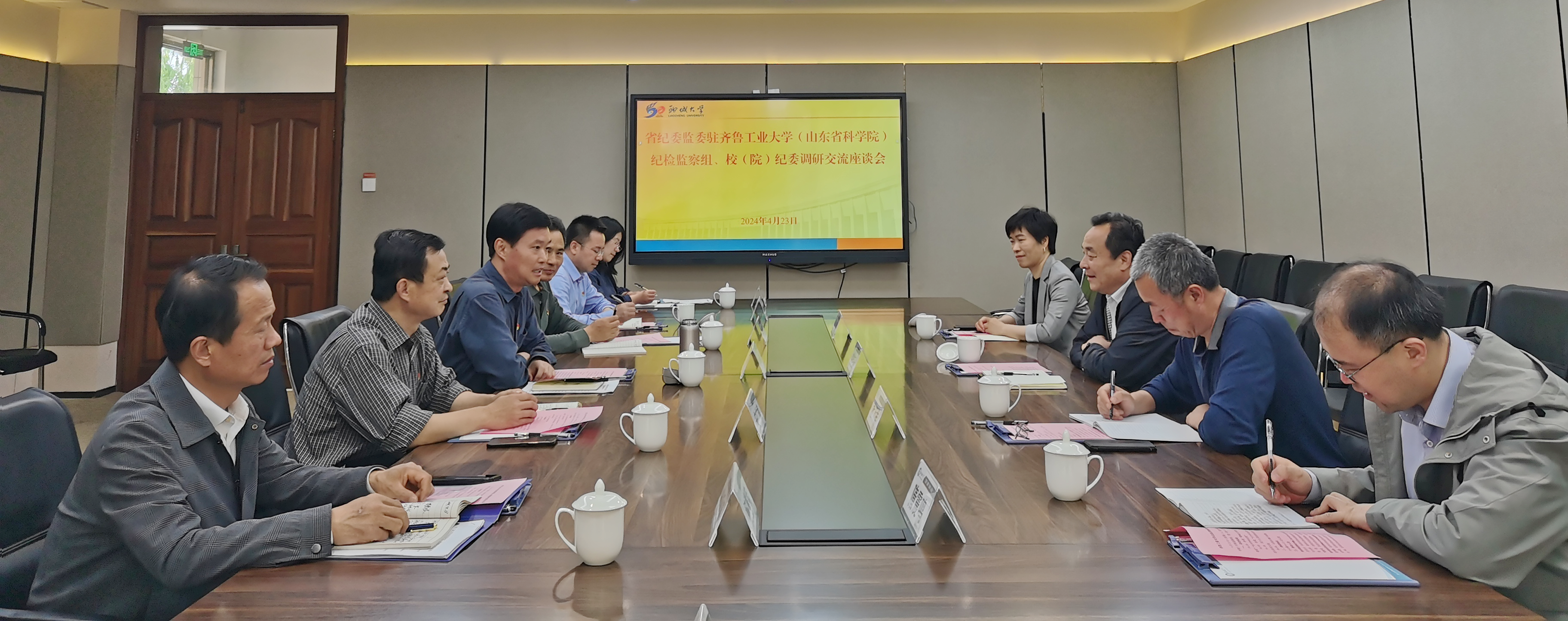 4月23日下午,省纪委监委驻齐鲁工业大学(山东省科学院)纪检监察组组长、党委委员、纪委书记房克乐一行来今年会调研交流。省纪委监委驻校纪检监察组组长、党委常委、纪委书记高秀鹏主持座谈会,驻校纪检监察组、纪委相关负责同志参加座谈。