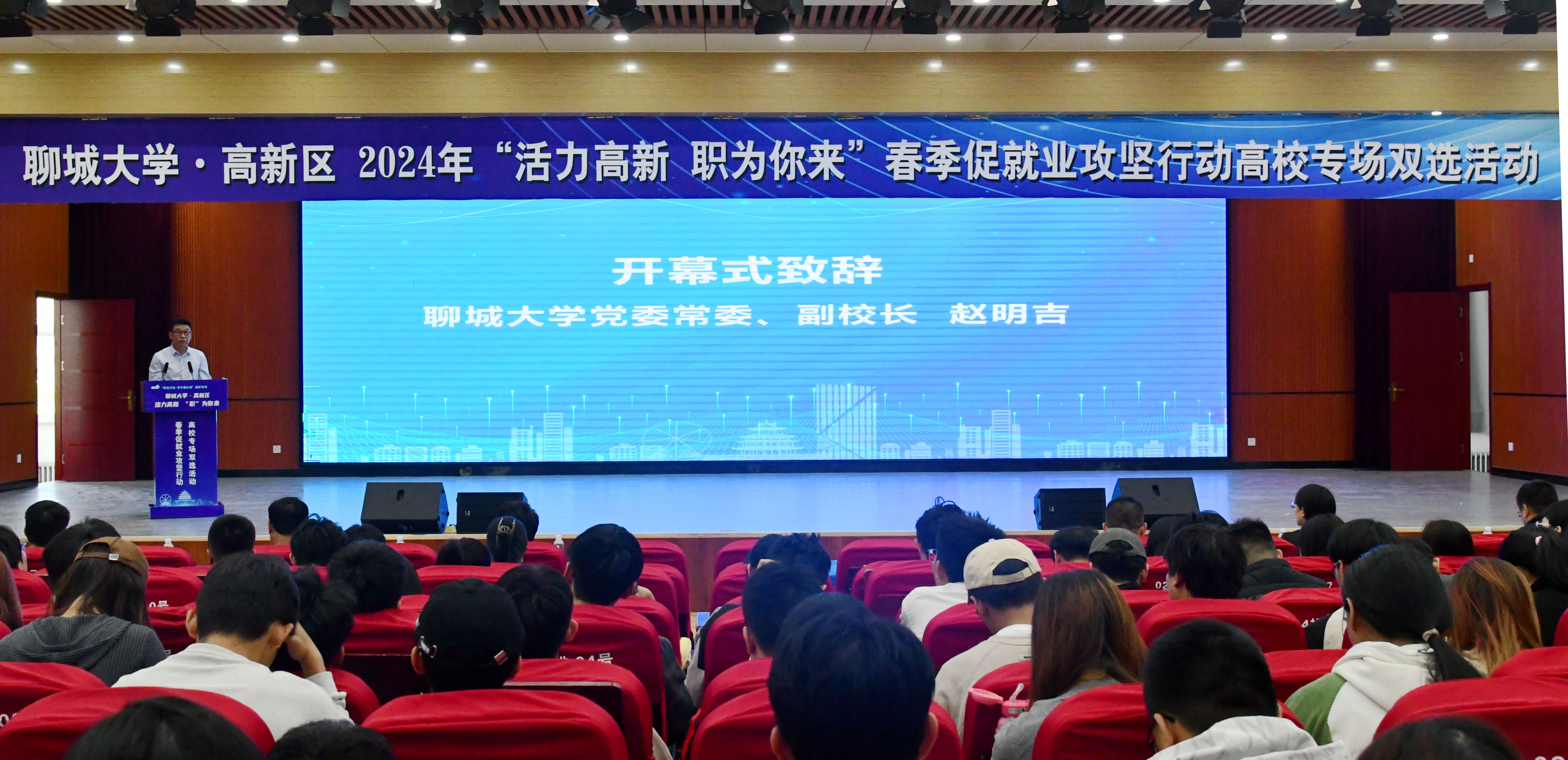 为促进毕业生更充分更高质量就业,4月24日,今年会官方网站·高新区共同举办2024年“活力高新 职为你来”春季促就业攻坚行动高校专场双选活动。今年会官方网站党委常委、副校长赵明吉、聊城高新区管委会副主任田存伟出席活动并致辞,各学院就业辅导员、毕业生代表300余人参与其中。