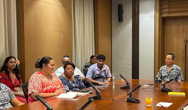 当地时间4月26日下午,中国驻萨摩亚大使馆举办使馆开放日暨青年交流活动,邀请来自包括萨摩亚国立大学孔子学院在内的萨摩亚外交贸易部、萨摩亚通信公司、萨摩亚非政府组织联盟等机构的近30位萨摩亚青年人参加。