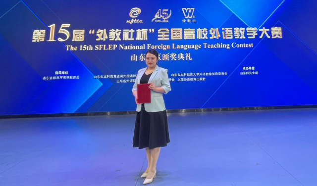 5月10日至12日,第十五届“外教社杯”全国高校外语教学大赛山东赛区复赛和决赛于在山东师范大学成功举办,全省156个队伍参与奖项角逐,设置一等奖4项、二等奖6项、三等奖10项。外国语学院张媛及其团队荣获英语专业组二等奖,颜鑫同及其团队荣获大学英语组三等奖。