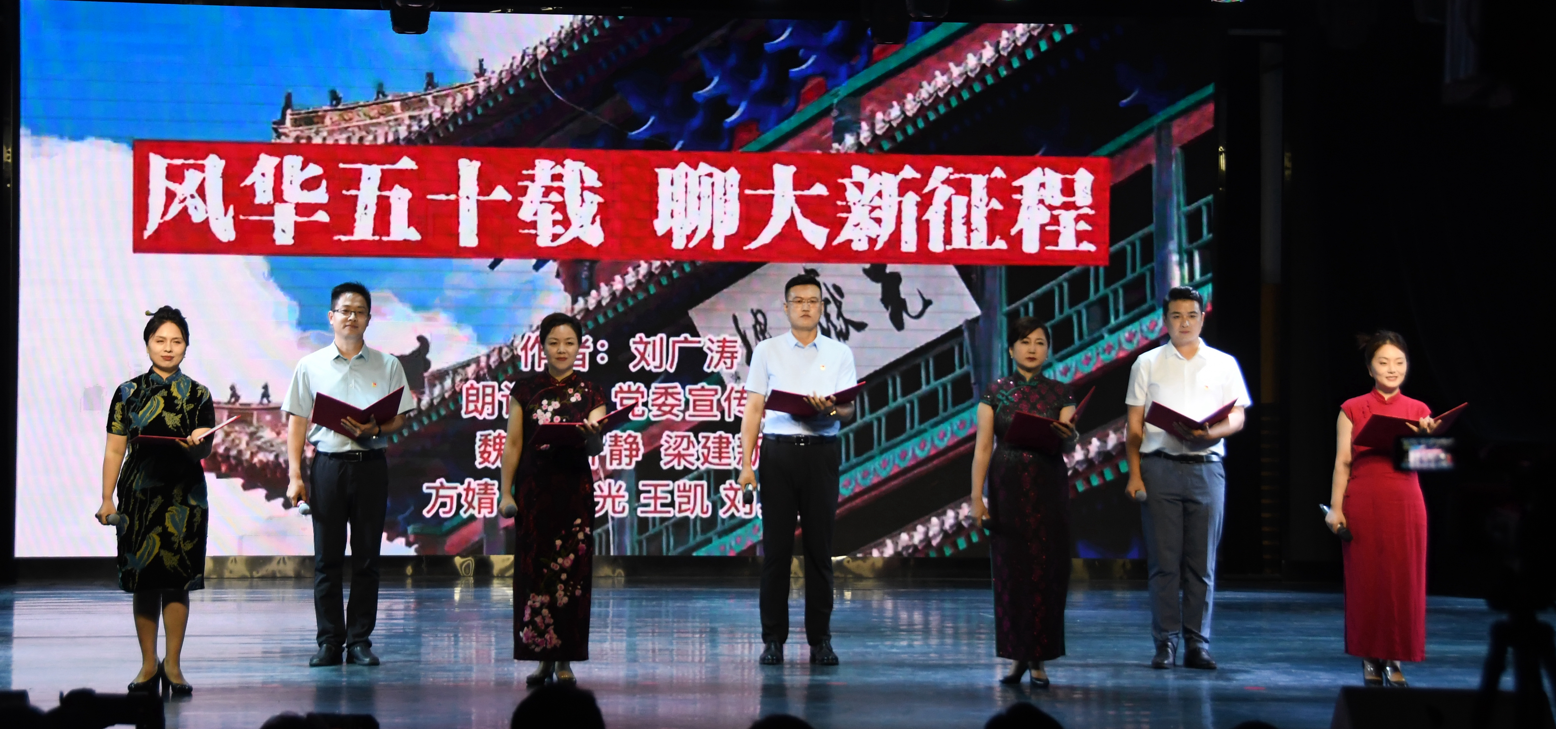 此次诗会以“五秩传薪火 砥砺谱新篇”为主题,共分为“薪火篇”“奋斗篇”“担当篇”“未来篇”四个篇章,各篇章环环相接,层层递进,象征着聊大人拼搏进取,创办高水平大学的奋进之路。