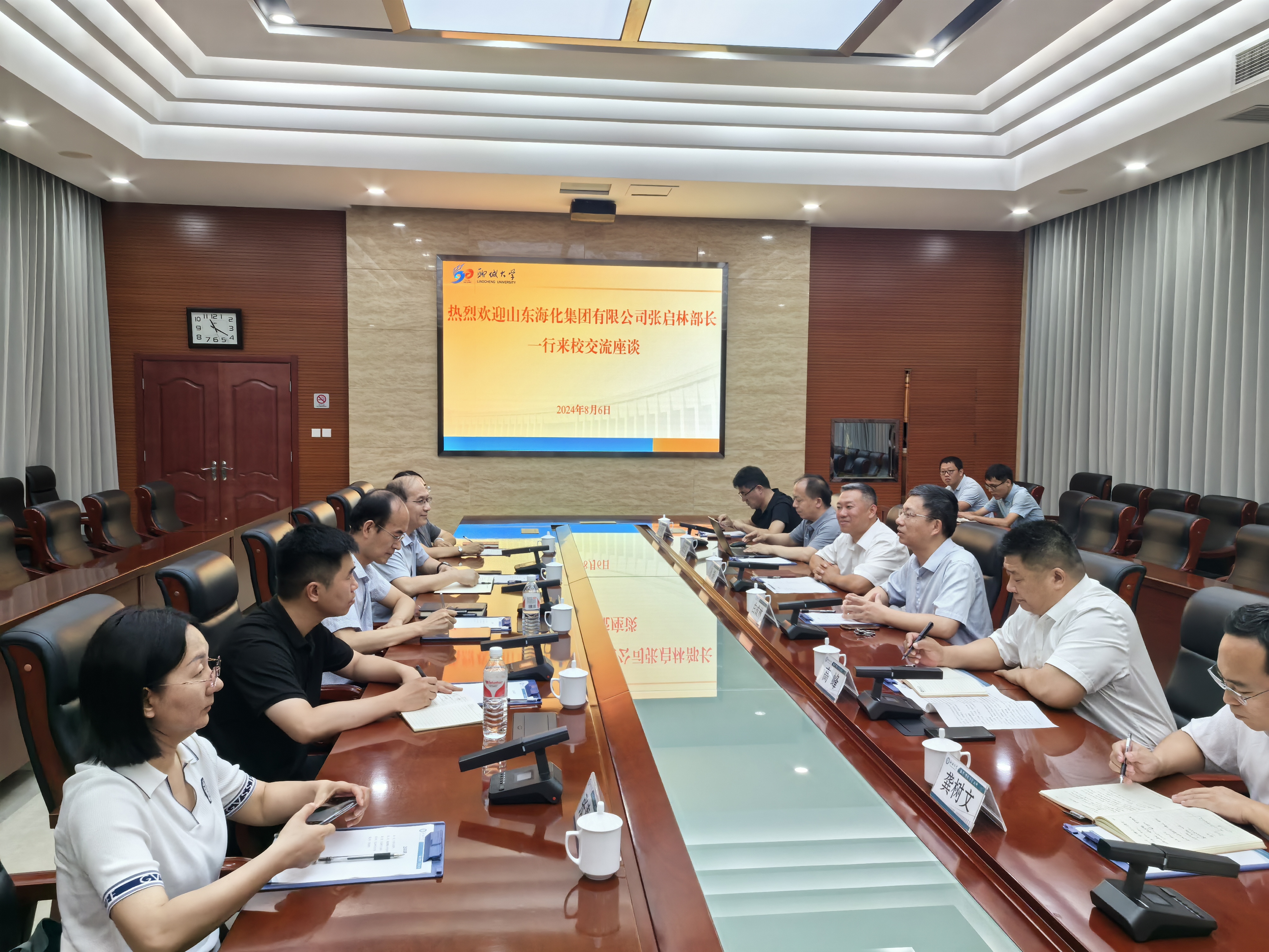 8月6日,山东海化集团有限公司人力资源部部长张启林一行来校洽谈合作。学校党委常委、副校长白成林与客人座谈交流。座谈会由融合发展处处长丛振主持。