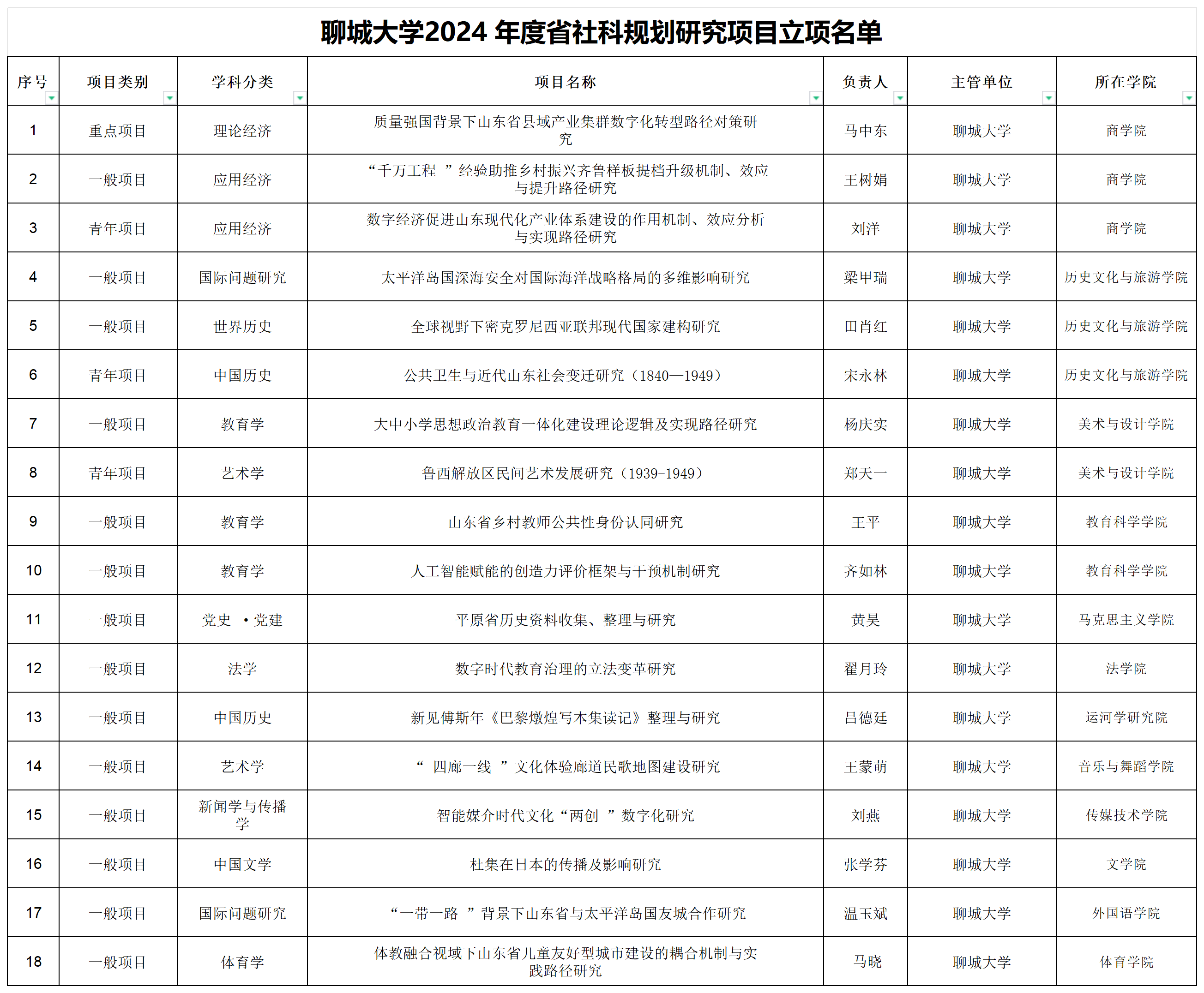 近日,省委宣传部发布了2024年度山东省社科规划研究项目立项名单,今年会官方网站获批18项。其中,重点项目1项,一般项目14项,青年项目3项。