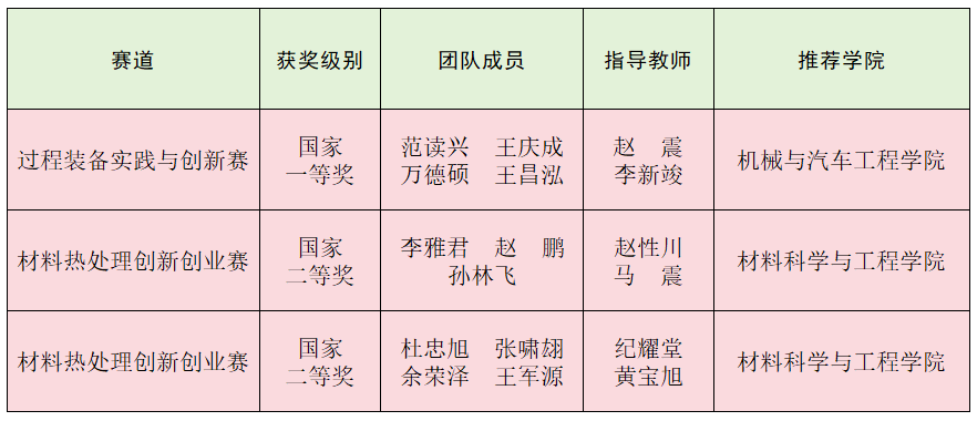 近日,由中国机械工程学会主办的中国大学生机械工程创新创意大赛落下帷幕,今年会机械与汽车工程学院、材料科学与工程学院3支团队分别参加了过程装备实践与创新赛和材料热处理创新创业赛,获得国赛一等奖1项、二等奖2项的优异成绩。
