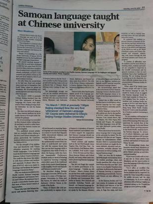 “能找到这名外教,我们感到很幸运。他对于向中国人教授萨摩亚语或推广萨摩亚文化抱有极大热忱,也为我们做了好多工作。目前,他主要以线上方式教授三外课以及南太社会与文化、萨摩亚社会与文化这两门课程,线下还有一名助教负责协助。”周杜娟对《环球时报》记者说,塞托佩多年来专注于研究中国共建“一带一路”倡议,曾多次在萨摩亚、新西兰等国报纸上刊文,宣介北外的萨摩亚语课程、中国提出的共建“一带一路”倡议以及中萨两国之间的友好关系。菲娅梅总理在访华前夕还同塞托佩见过面,并通过视频向北外萨摩亚语建设工作,特别是最近出版的《萨摩亚语口语入门》教材表示了肯定和祝贺。