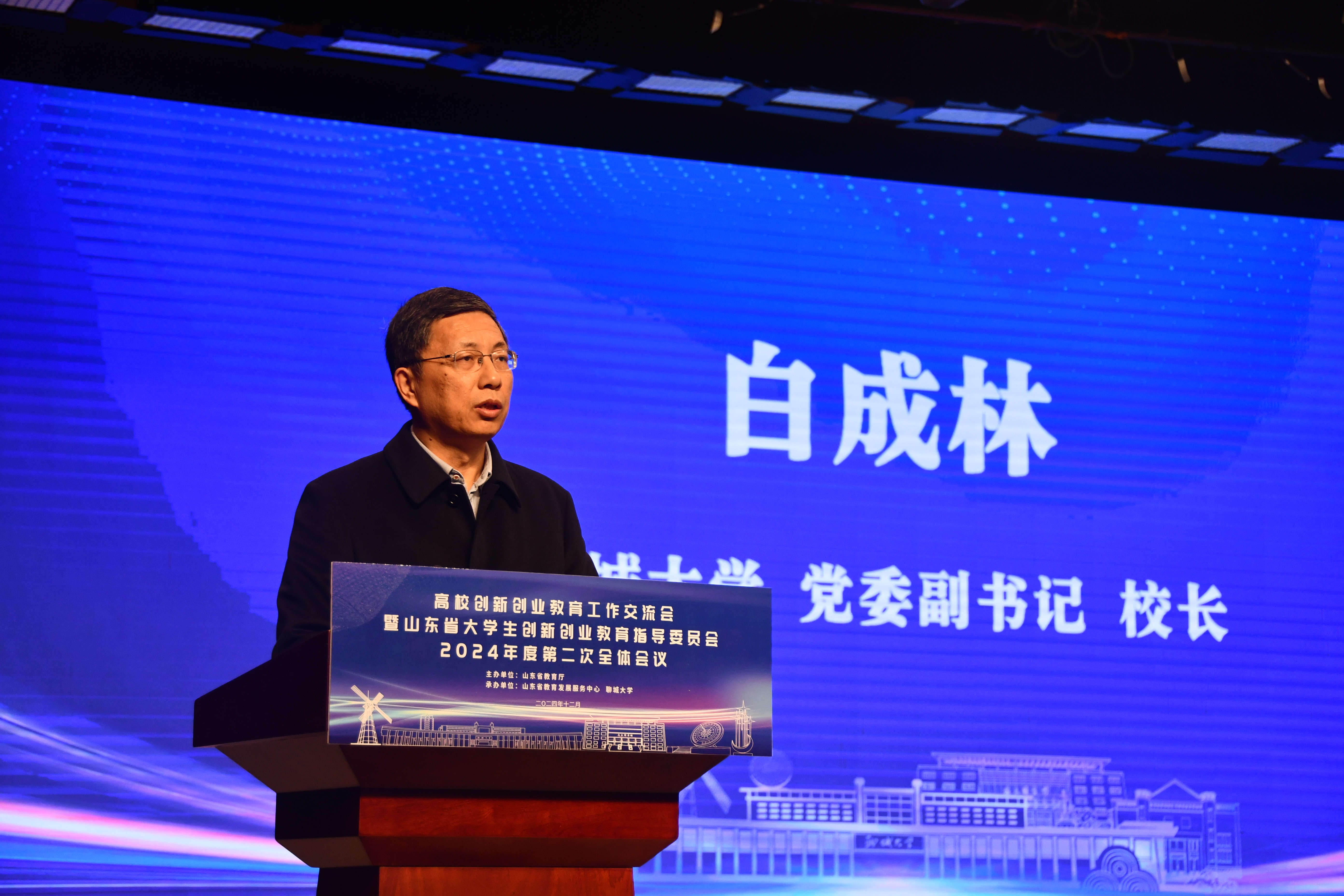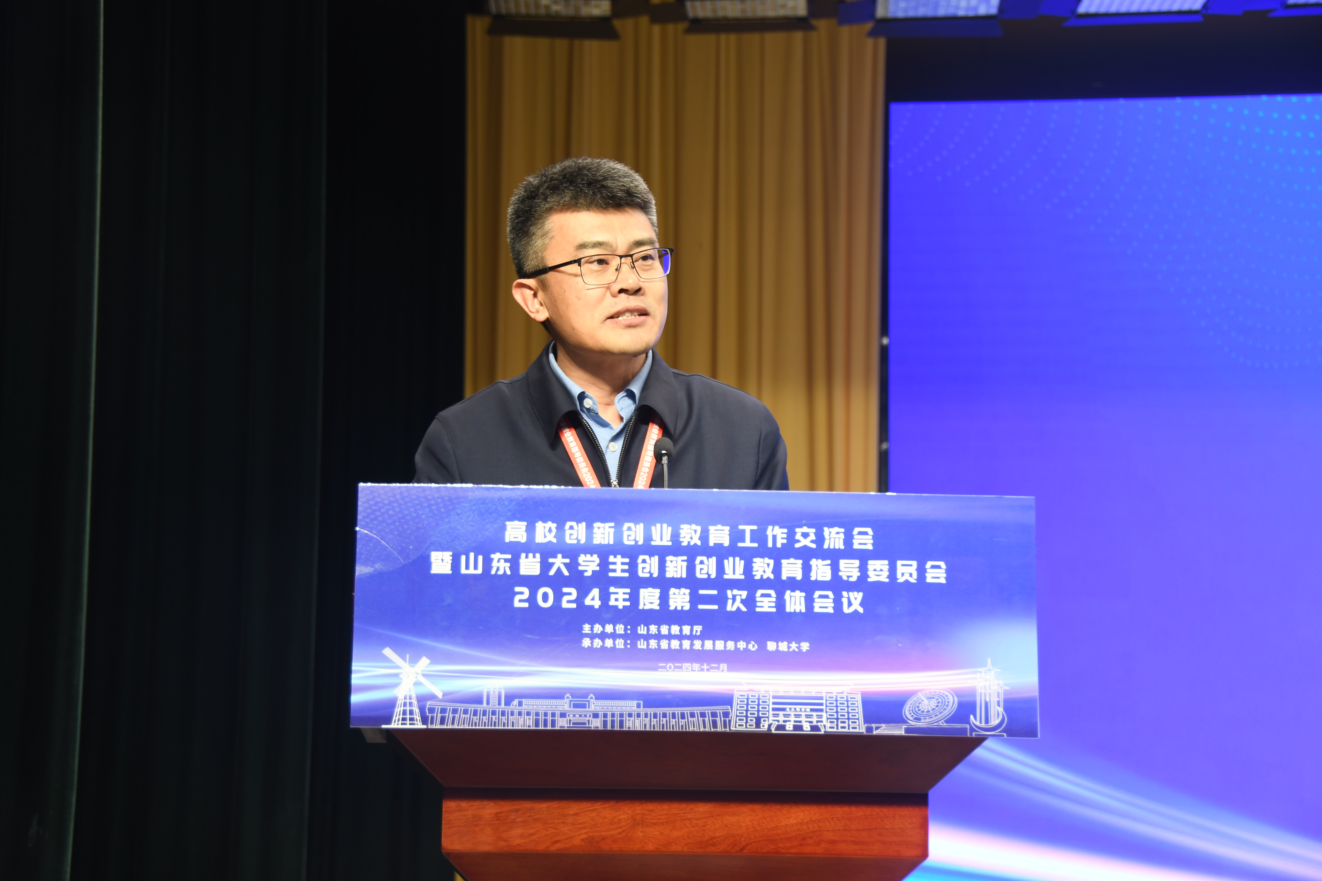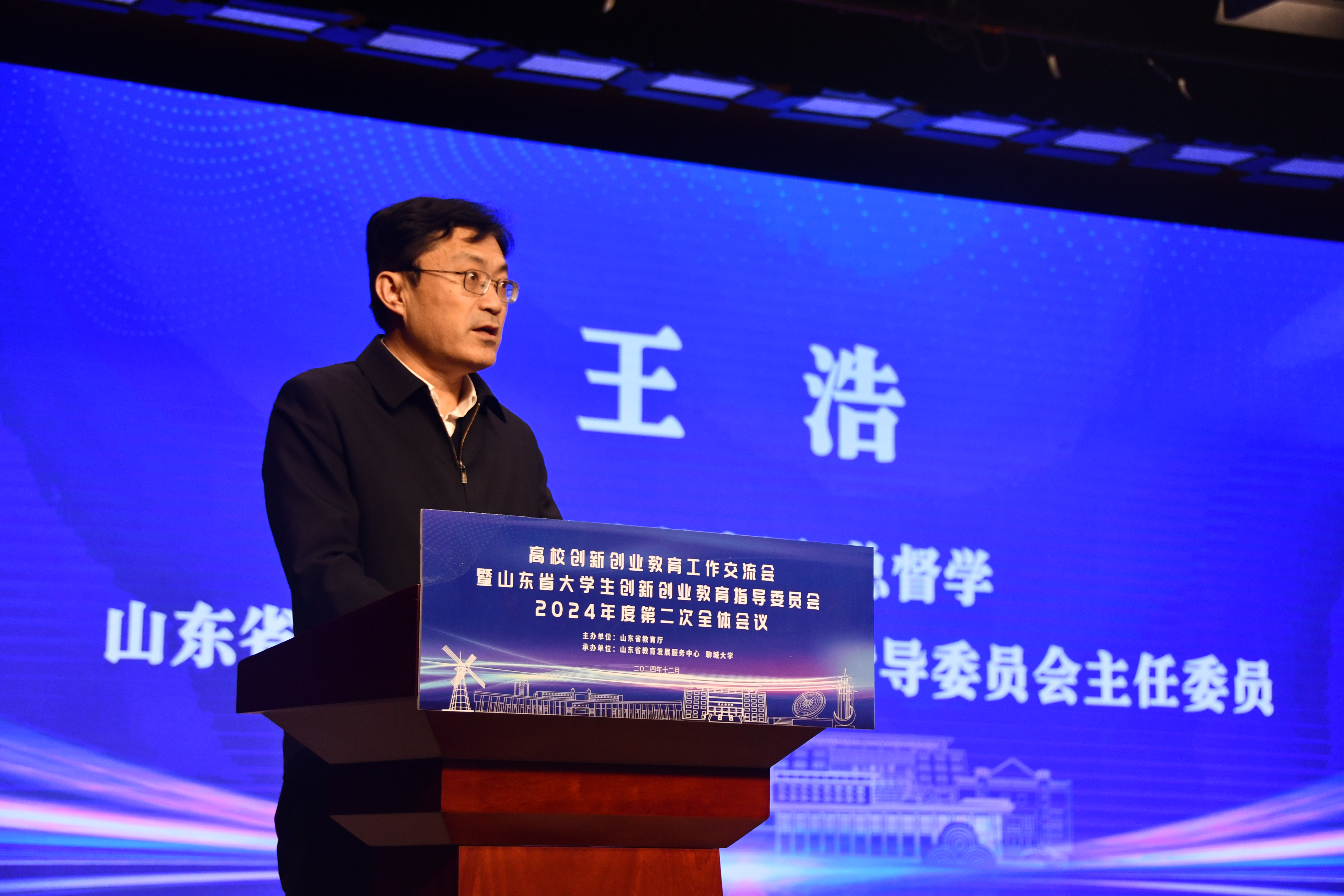 王浩在致辞中指出,建设教育强国,龙头是高等教育;高等教育综合改革,创新创业教育是突破口。以创新能力培养为导向的高等教育人才培养范式变革是未来一段时间高等教育发展的重要主题。他强调,我们要认真学习领会习近平总书记10月16日给中国国际大学生创新大赛参赛学生代表的重要回信精神,进一步发挥创新创业教育在高等教育综合改革、人才培养范式变革中的引领作用。一要强化创新创业教育顶层设计,把创新创业教育作为推进科技自立自强、教育科技人才一体发展的重要制度设计,作为拔尖创新人才自主培养的重要渠道,贯穿教育教学、人才培养全过程。二要优化高校创新创业教育生态,着力加强校级层面的创新创业教育工作整体设计,聚焦创新创业教育课程体系建设、教学方式改进、师资能力提升、评价激励机制等方面,营造鼓励支持师生创新创业的良好氛围,激发创新创业创造热情。三要加快高校人才培养范式变革,实现从“以知识为中心”到“以创新能力为中心”的范式转变,打造形成“一校一特色”的创新创业教育人才培养格局。四要深化大学生创新大赛赛事改革,加强大赛与人才培养联动,更加注重项目质量、更加突出大赛的育人功能,打造山东创新创业赛事品牌,为培养更多具有科学精神、创新思维、创业能力的高素质人才,为现代化强省建设作出新的更大贡献。