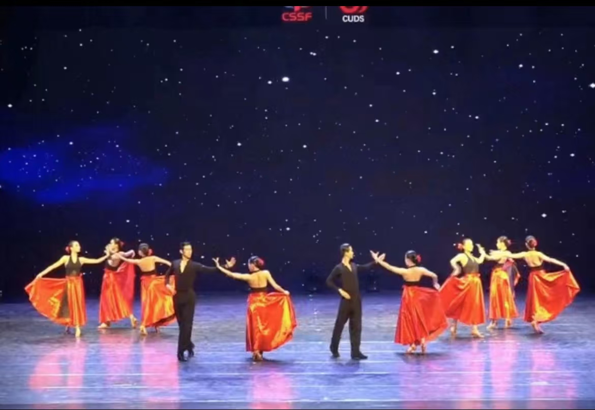 今年会传媒技术学院、教育科学学院、文学院、数学科学学院、物理科学与信息工程学院、美术与设计学院、商学院(质量学院)以及机械与汽车工程学院的11名同学参赛。同学们巧妙融合了体育舞蹈的强劲力量与高雅艺术美感,动作整齐划一、节奏把控精准无误、情感表达真挚饱满,进行了出色发挥。