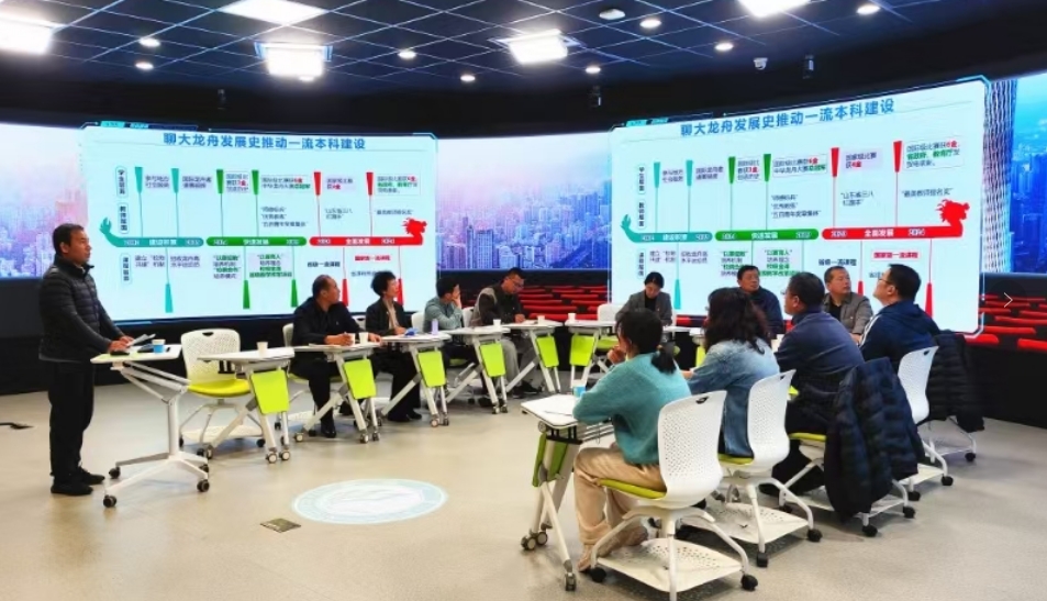 体育学院教授陈翀从聊大龙舟发展史推动一流本科建设、聊大龙舟精神助力传统文化弘扬、龙舟品牌效应引发社会关注三个方面介绍了聊大龙舟队相关情况。文学院博士袁辉讲到,学院在积极培养高素质人才,创新教学模式,组织丰富文化活动,推动文化传播的同时,应深化“文以载道、体以育人”内涵,全面加强学科专业建设。体育学院教授张春燕深入讲解了中华优秀传统体育文化的历史渊源与时代愿景,详细梳理了龙舟文化发展史,凝练出“家国天下,同舟共济”的中华龙舟文化精神,为学科专业建设提供有益经验。文学院教授石小寒结合师生体育发展情况,强调龙舟文化的时代价值,并对学科专业建设提出具体建议,倡导以赛促教、以赛育人。