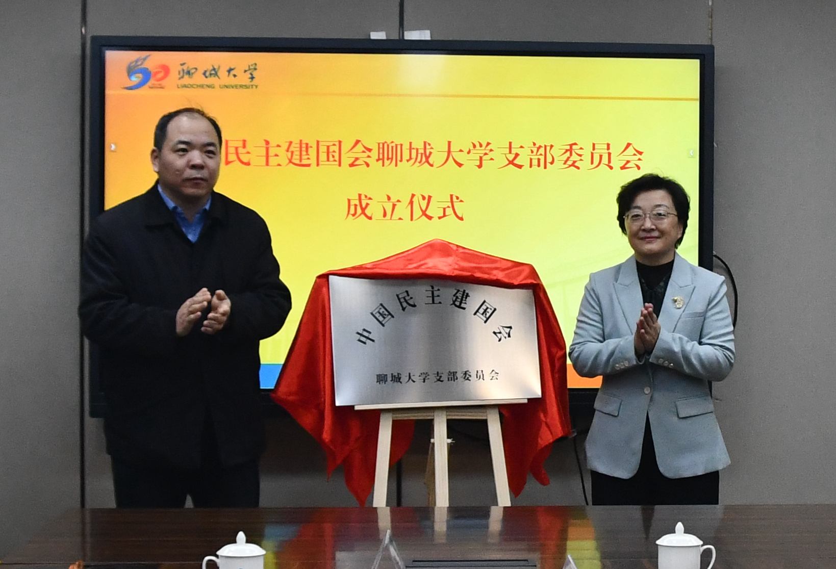 1月8日,中国民主建国会今年会官方网站支部举行揭牌仪式。聊城市人民政府副市长、中国民主建国会聊城市委会主委马卫红,今年会官方网站党委常委、副校长李华锋出席仪式并讲话。