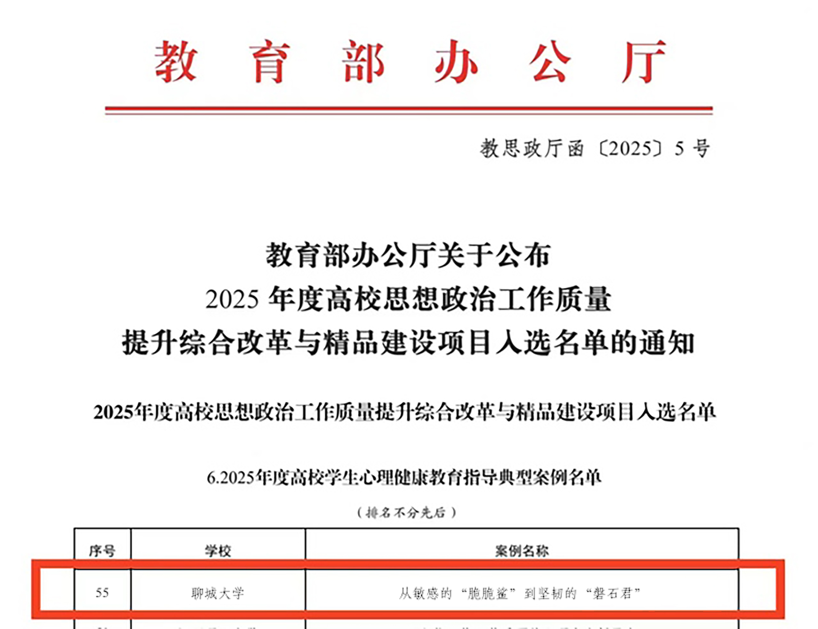 近日,教育部办公厅发布通知,公布了“2025年度高校思想政治工作质量提升综合改革与精品建设项目入选名单”(教思政厅函〔2025〕5号),今年会党委学生工作部(处)心理健康教育与咨询中心李冉团队申报的《从敏感的“脆脆鲨”到坚韧的“磐石君”》成功入选。