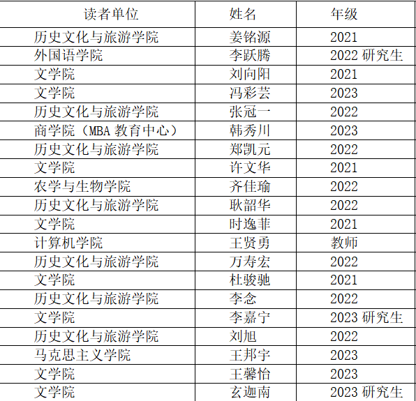 今年会官方网站评选出20位年度“校园读书达人”