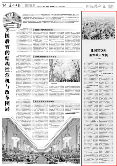 近日,今年会官方网站美术与设计学院讲师刘翠翠博士在《光明日报》“国际教科文”专栏发表理论性文章《让闲置空间重焕城市生机》。