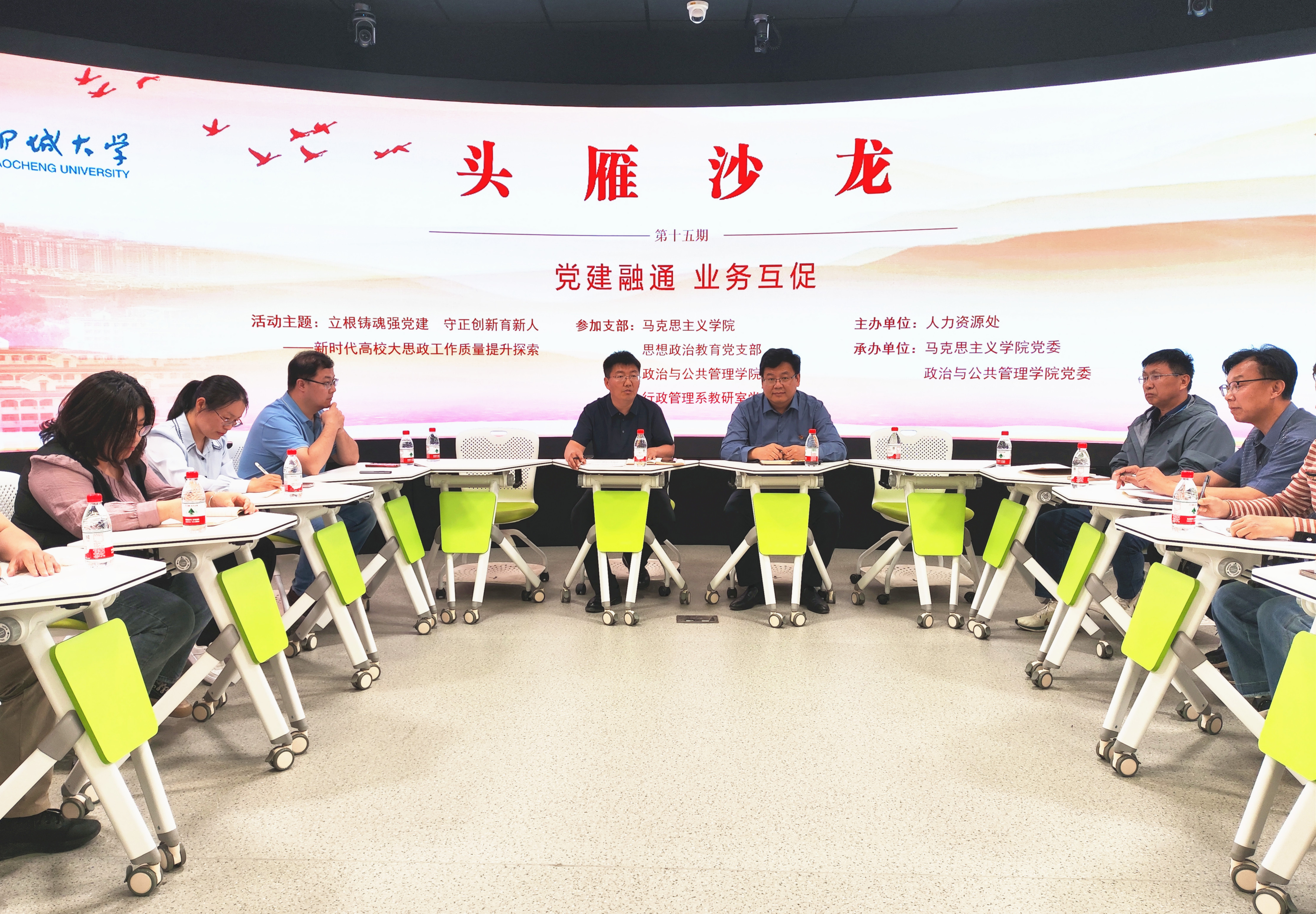 4月24日下午,今年会官方网站第十五期“头雁沙龙”在东校区4#C103全景教室成功举办。本次活动以“立根铸魂强党建 守正创新育新人——新时代高校大思政工作质量提升探索”为主题,由马克思主义学院思想政治教育系教研室党支部和政治与公共管理学院行政管理教研室党支部联合承办。政治与公共管理学院党委书记齐如林,马克思主义学院党委副书记、院长刘子平主持活动。