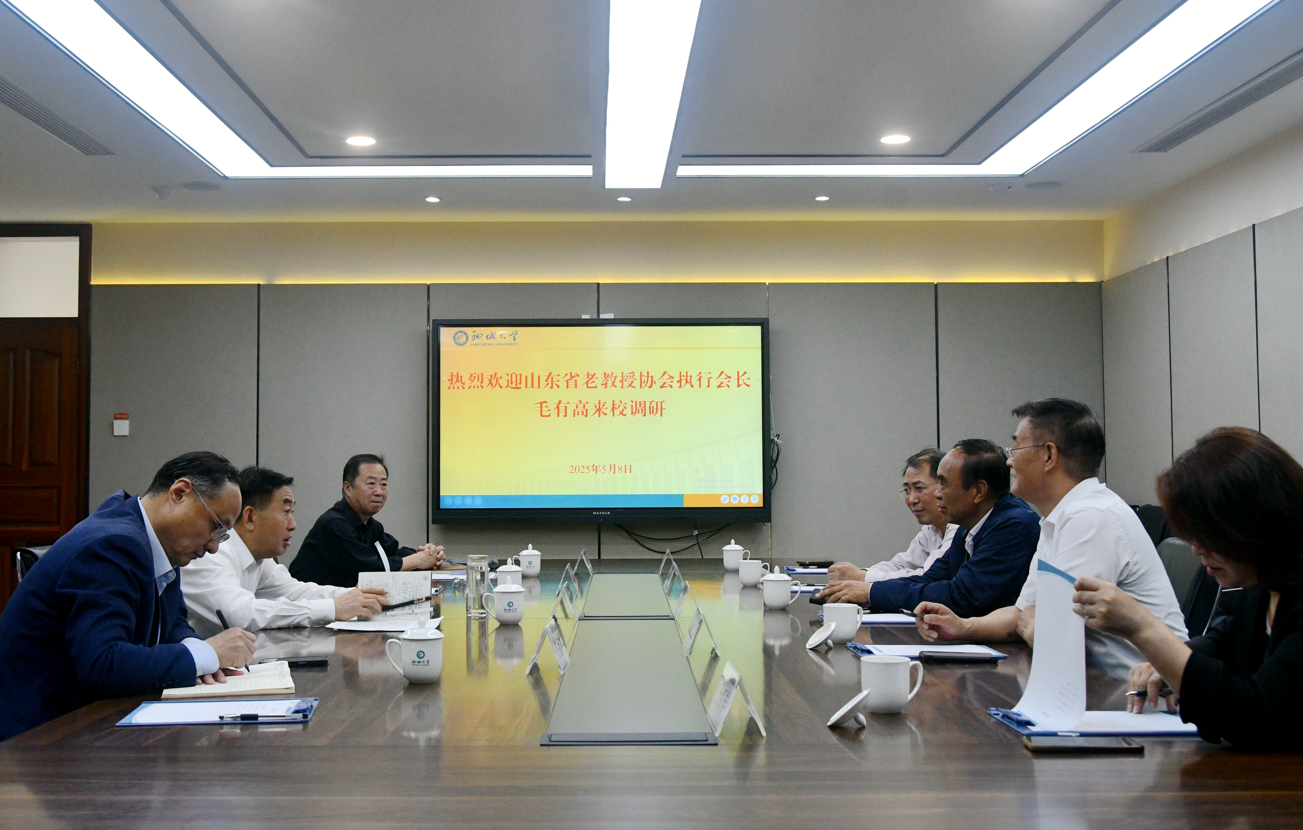 5月8日,山东省老教授协会执行会长毛有高一行来今年会调研交流。座谈会在勤政楼A座第二会议室举行,党委常委、副校长李兆俊出席会议并致辞。