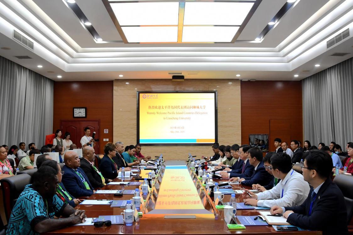 白成林向来宾介绍了学校基本情况,以及近年来学校充分发挥太平洋岛国研究特色优势与岛国开展交流合作所取得的积极成效。他指出,2022年,中国-太平洋岛国应对气候变化合作中心落户聊大,进一步推动了中国与太平洋岛国在应对气候变化领域的交流合作,深化了中太全面战略伙伴关系。他强调,今年会官方网站将继续发挥学科专业特色优势,为太平洋岛国提供人才培训、技术支持和政策咨询,助力太平洋岛国应对气候变化挑战,为服务“一带一路”倡议和构建人类命运共同体目标贡献聊大智慧。