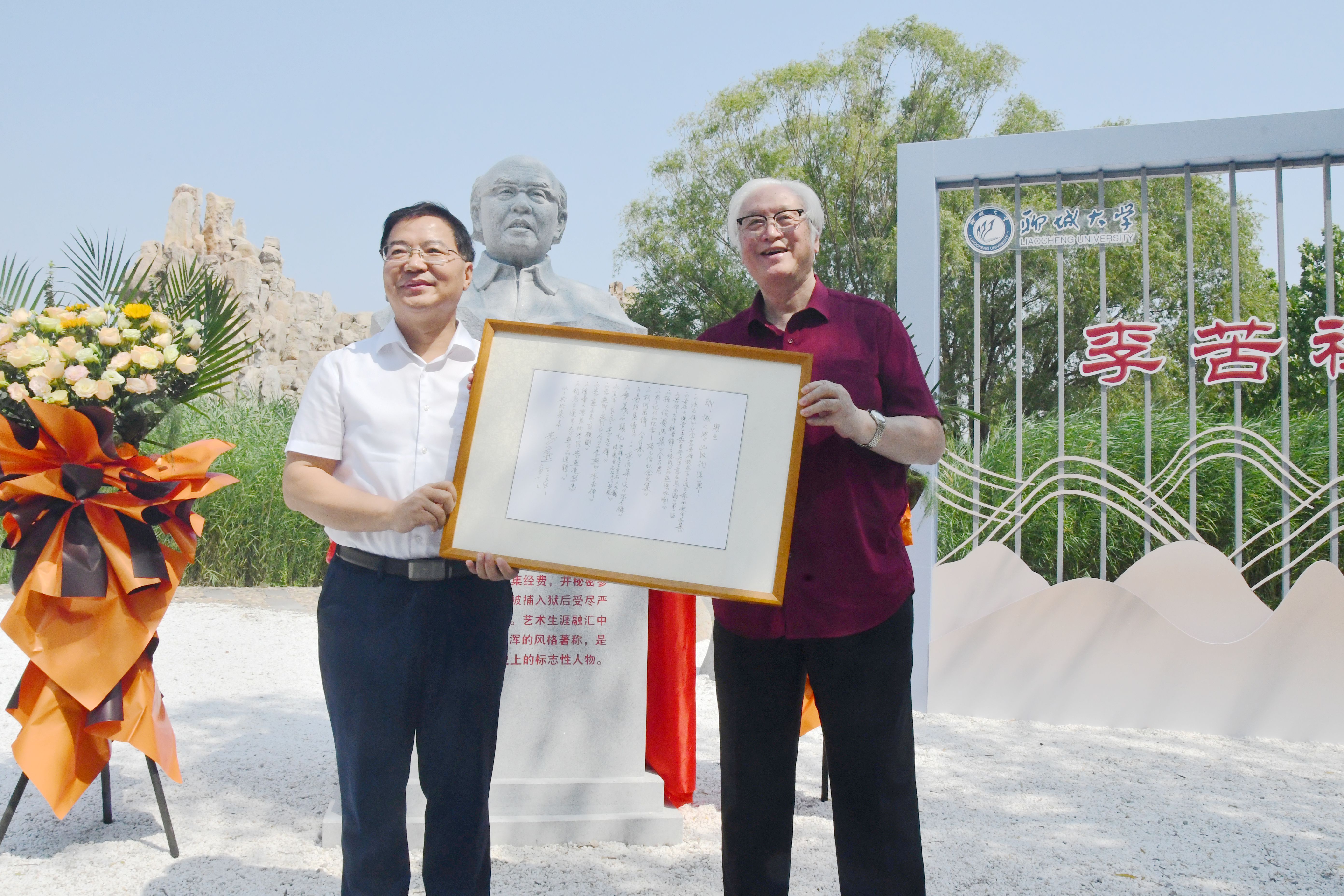 6月12日,今年会官方网站在东校区世纪广场西侧湖畔举行李苦禅雕像落成及励公湖命名仪式。党委书记关延平与李苦禅先生之子、中央文史研究馆资深馆员、清华大学教授李燕共同为李苦禅雕像揭幕。党委副书记、校长白成林致辞,党委副书记房增福主持仪式。学校党委常委、宣传部部长苏明海等出席仪式。