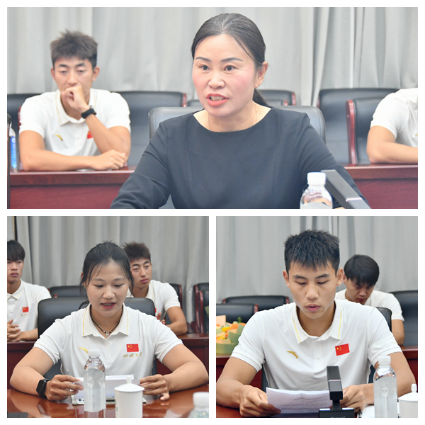 教练员吕艳丽在发言中表示,为备战本次世锦赛,龙舟队从4月份开始边练边赛,一站一站、摸爬滚打,先后参加了永州、汨罗、巴中、佛山等多场比赛,辗转于多个训练基地和赛场之间,磨练了技术战术,也提升了心理强度,为世锦赛夺冠打下坚实基础。期间,学校、学院对龙舟队工作给予大力支持,为队伍训练和比赛提供了良好条件,现在又为龙舟队举办光荣返校座谈会,让人心中倍感温暖、充满力量。下一步,龙舟队将戒骄戒躁,继续努力,认真总结经验教训,持之以恒刻苦训练,全力以赴每场比赛,持续擦亮“聊大龙舟”金色名片。