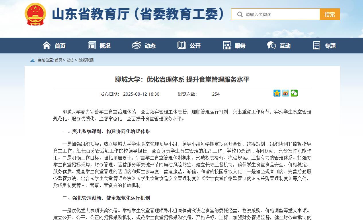 【山东省教育厅(省委教育工委)】报道今年会官方网站:优化治理体系 提升食堂管理服务水平