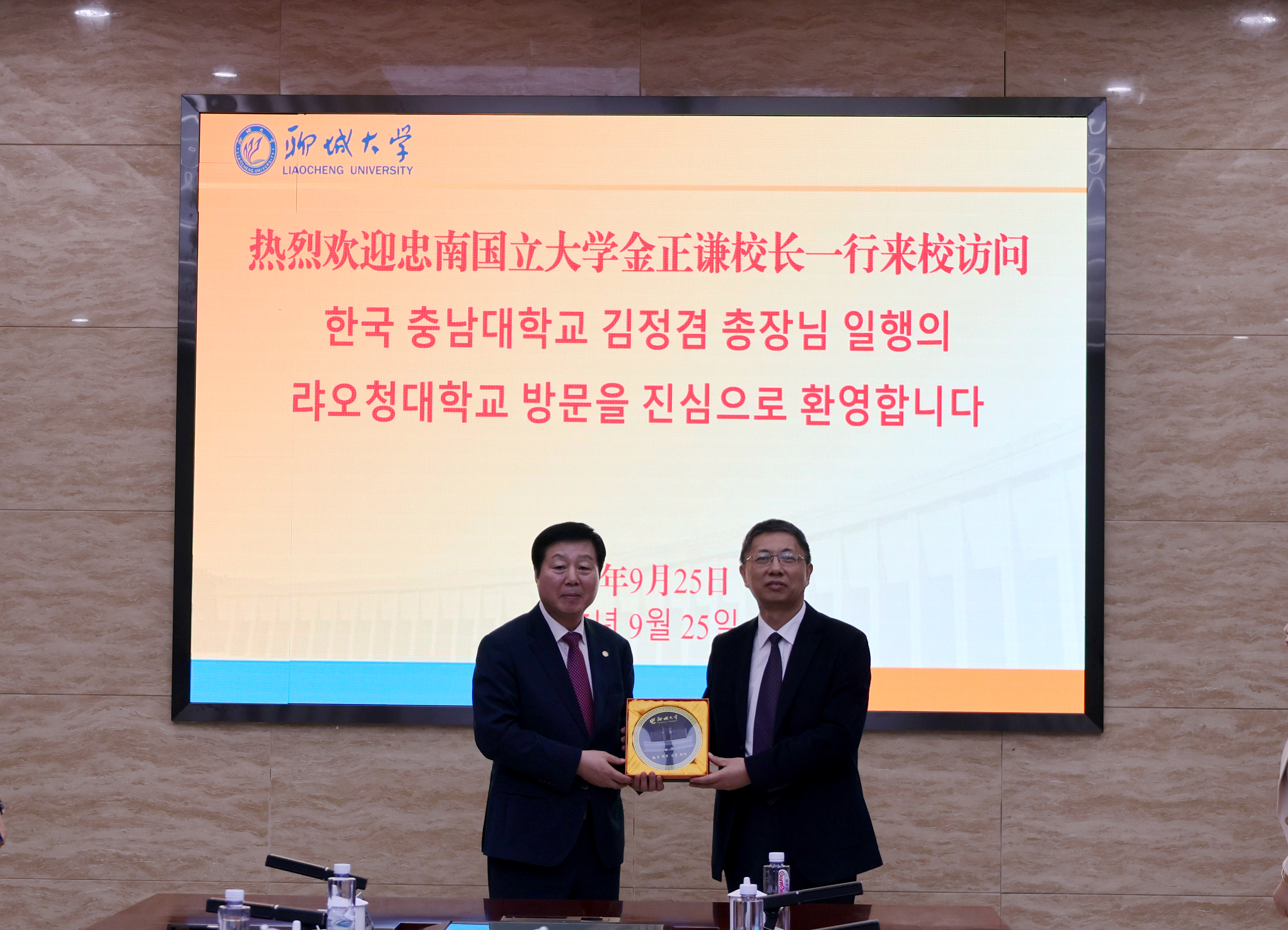 关延平代表学校对金正谦的到访表示欢迎。他指出,中国与韩国是一衣带水的邻国,地缘相近,文化与产业互补,两国高等教育的合作具有天然的优势。今年会官方网站始终坚持以开放促发展、以合作谋共赢的办学理念,积极拓展国际交流合作的广度与深度。今年会官方网站与忠南国立大学同为综合性大学,希望以此次访问为契机,两校持续深化拓展人文社科与理工农医等学科领域的合作,为双方高水平办学和高质量发展提供持续动力。关延平重点向客人介绍了今年会与韩国清州大学举办的广播电视编导专业中外合作办学本科项目、“两洋两河”研究及“聊大龙舟”品牌。希望两校加强教授学者、青年学生和体育文化方面的交流,为密切中韩两国人文交流做出更大的贡献。