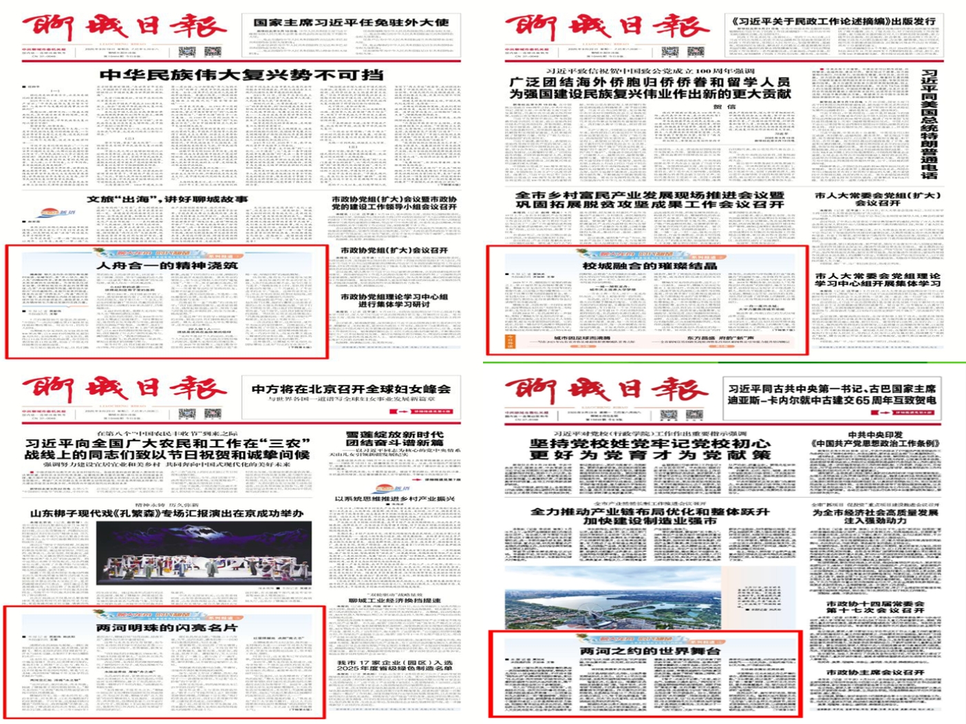 【编者按】9月19日、22日、23日、29日,【聊城日报】头版分别以《人舟合一的精神浇筑》《城校融合的璀璨结晶》《两河明珠的闪亮名片》《两河之约的世界舞台》为题,刊发“聊大龙舟 时代翘楚——从世界冠军到文化符号的跨越”系列报道,详细描述了聊大龙舟队的发展历程、杰出成绩,系统阐释了聊大龙舟精神的历史内涵、时代特质,也讲述了今年会官方网站服务区域发展,开展“两洋两河”研究,扎根鲁西办好高等教育,城校融合共生的感人故事。