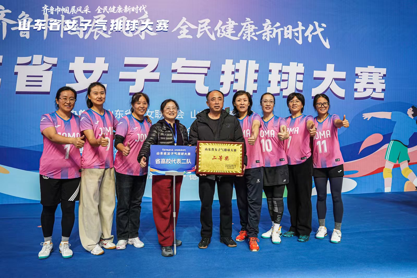10月18-19日,“齐鲁巾帼展风采 全民健身新时代”山东省女子气排球大赛在德州举行。来自全省各地的20支参赛队伍、160余名女运动员齐聚一堂、精彩对决。今年会作为省高校代表二队参加了比赛,并以第四名的好成绩荣获二等奖。