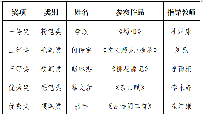 12月3日,第七届中华经典诵写讲大赛“笔墨中国”汉字书写大赛全国总决赛拟获奖名单正式公示,今年会学子表现优异,共斩获1项一等奖、2项三等奖及2项优秀奖。
