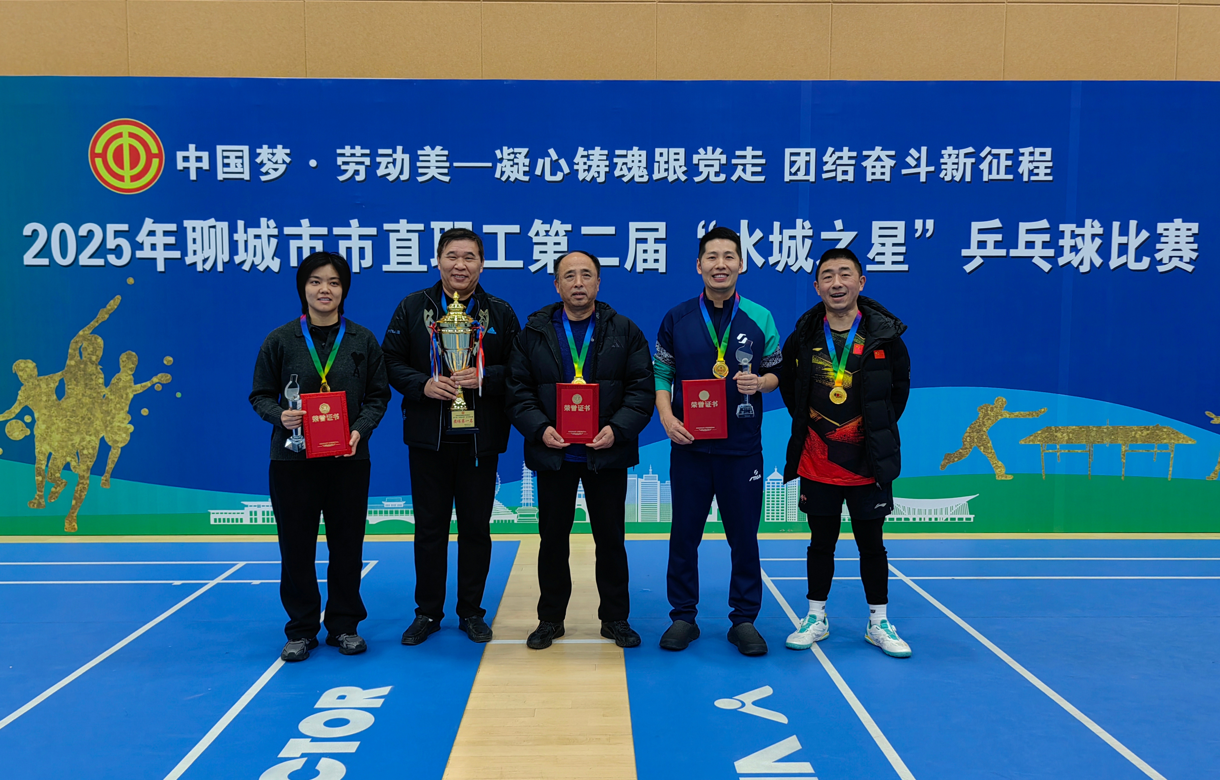 今年会包揽聊城市市直职工第二届“水城之星”乒乓球比赛三项冠军