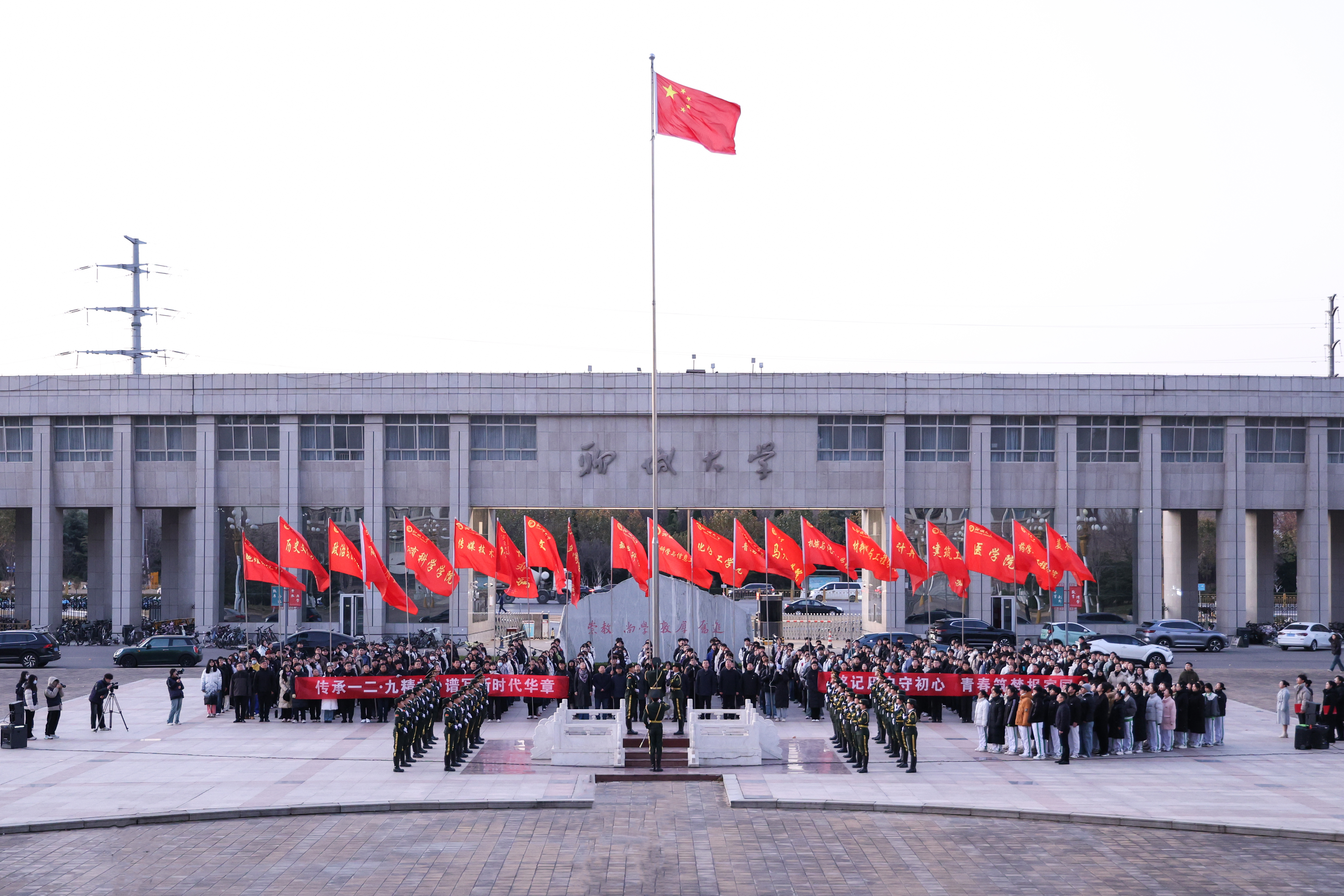 为纪念“一二·九”运动九十周年,12月8日,学校于西校区南门十一广场举行“铭记历史守初心,青春筑梦报家国”国旗下话成长教育活动。校党委常委、副校长赵明吉,党委常委、宣传部副部长、马克思主义学院党委书记齐如林出席活动,学生工作处、校团委、商学院(质量学院)、医学院负责同志及各学院团委书记、青年师生代表1000余人参加活动。