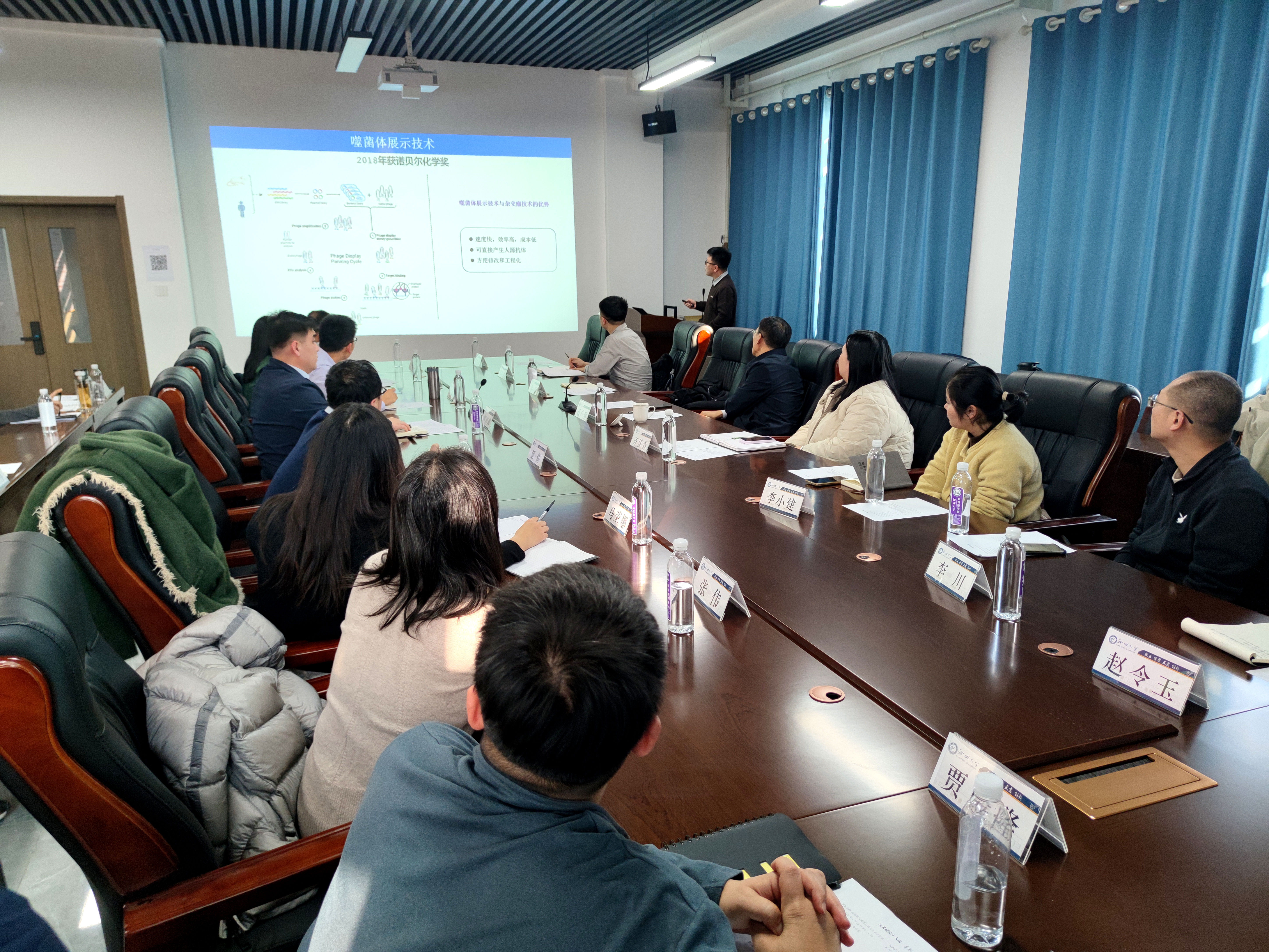 本期活动由科学技术处主办,药学与食品工程学院承办,以“药物靶向递送材料与生命分析”为主题,吸引了来自化学化工学院、农业与生物学院及药学与食品工程学院共20位青年教师参与。来自农业与生物学院的曹胜亮副教授,药学与食品工程学院的王学堃副教授、延辉副教授、葛士坤博士、魏福尧博士以及在读博士生任天莹,结合各自的科研经历,分享了近期研究进展与成果。现场交流气氛热烈,与会教师围绕报告内容,结合自身研究方向展开深入探讨,在思维碰撞中启发了新的研究思路。