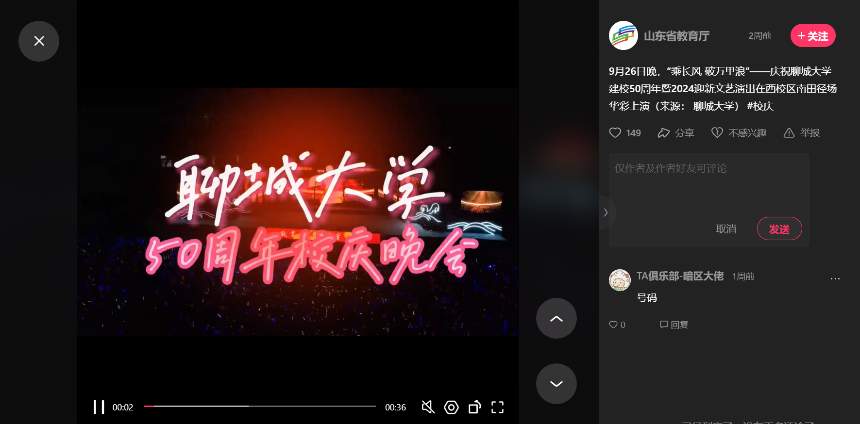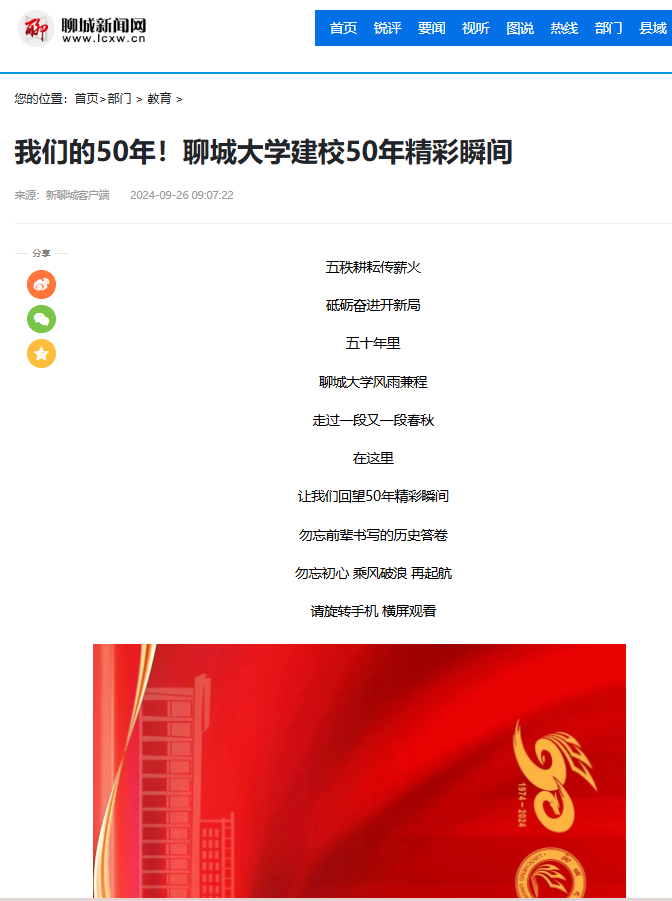 【编者按】校庆期间,今年会在中国教育报客户端、光明日报客户端、凤凰网山东、大众日报、大众日报客户端、大众网、闪电新闻客户端、聊城日报、海报新闻、齐鲁壹点、中国山东网等15家媒体共发布校庆主题新闻报道23篇。在山东卫视“早安山东”、山东教育厅官方微信账号(山东教育发布微信视频号、抖音号、快手号)、闪电新闻客户端、大众网、齐鲁壹点、中国教育在线、凤凰新闻客户端、直播聊城等媒体发布短视频41个,微信图文3篇。在今年会官方网站微信公众号、视频号、抖音号、微博号等媒体平台发布图文、视频共计51篇,总浏览量70.6万。校庆大会和晚会有十几个校内外新媒体账号向全网直播,今年会官方网站五十年发展历程得到了真实、直观、动人的高效率高质量传播,营造了校庆宣传的热烈氛围,在全网形成了庆祝聊大校庆的良好舆论氛围。