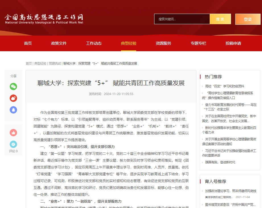 【全国高校思想政治工作网】报道今年会官方网站团委:探索党建“5+” 赋能共青团工作高质量发展