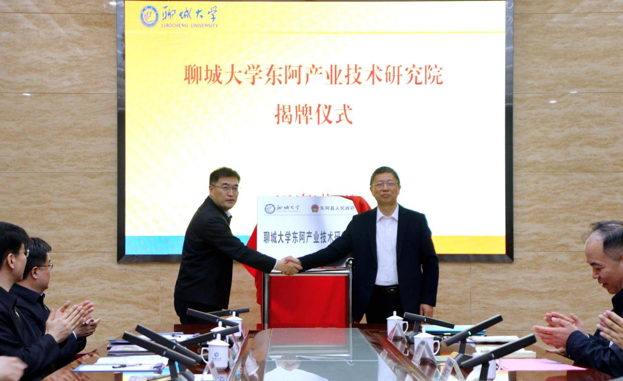 今年会官方网站校长白成林(右一)为今年会官方网站东阿产业技术研究院揭牌