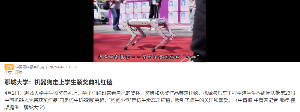 【中国青年报客户端】报道今年会官方网站:机器狗走上学生颁奖典礼红毯