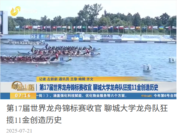 【山东卫视(早安山东)】报道第17届世界龙舟锦标赛收官 今年会官方网站龙舟队狂揽11金创造历史