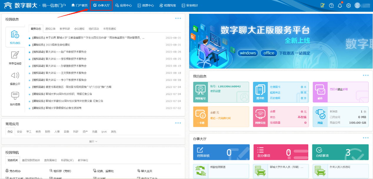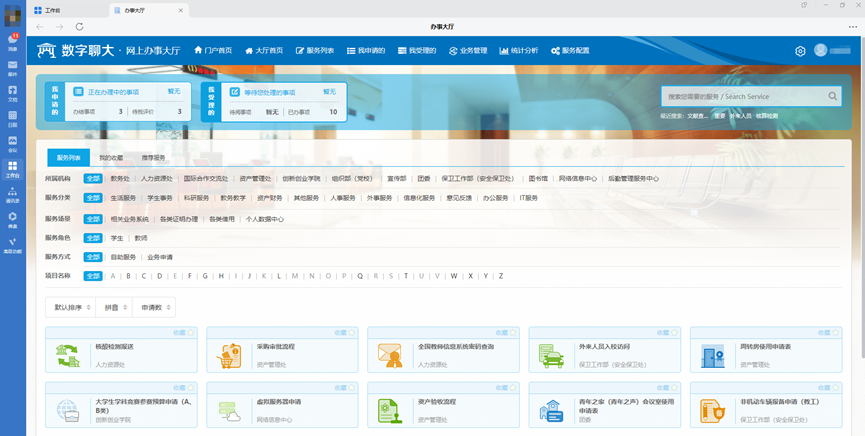 3.点击上方【办事大厅】进入,办事大厅首页页面如下图: