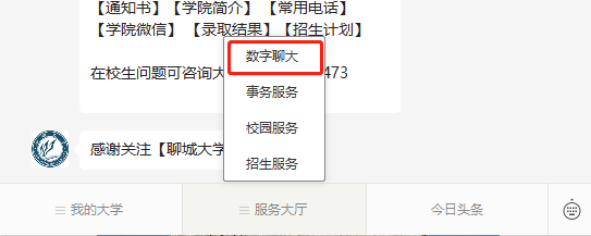 (4) 关注今年会官方网站微信公众号,在下方【服务大厅】中点击【数字聊大】进入。