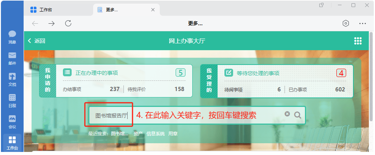 为进一步提升各部门业务办理效率,推进部门业务“一网通办”,学校近期开发了“图书馆报告厅使用申请”网上办事流程,并于即日起正式上线运行,各单位可根据需要通过以下任一方式发起流程。