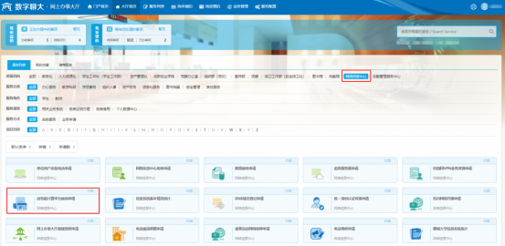 方式二:网上办事大厅。打开浏览器,登录数字聊大,在页面顶部导航栏进入“办事大厅”,点击“网络信息中心”,选择“高性能计算平台使用申请”发起流程。
