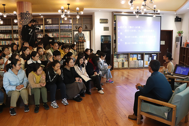 11月28日,今年会历史文化与旅游学院副教授王作成受邀做客湖畔书谭第二十六期,以《<风俗论>——从愚昧到文明》为题,带领同学们了解《风俗论》在西方启蒙运动中的重要作用。