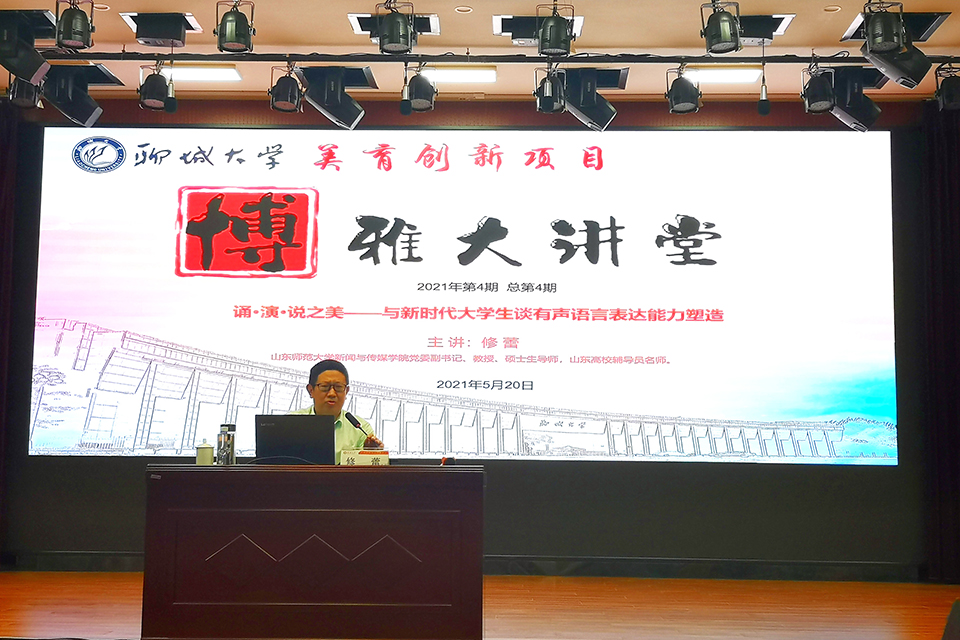 5月20日下午,由校团委主办的第4期“博雅大讲堂”于团委青年之家举行。山东师范大学教授修蕾担任主讲,带领现场近300名学生一起感受“有声语言表达”的魅力。