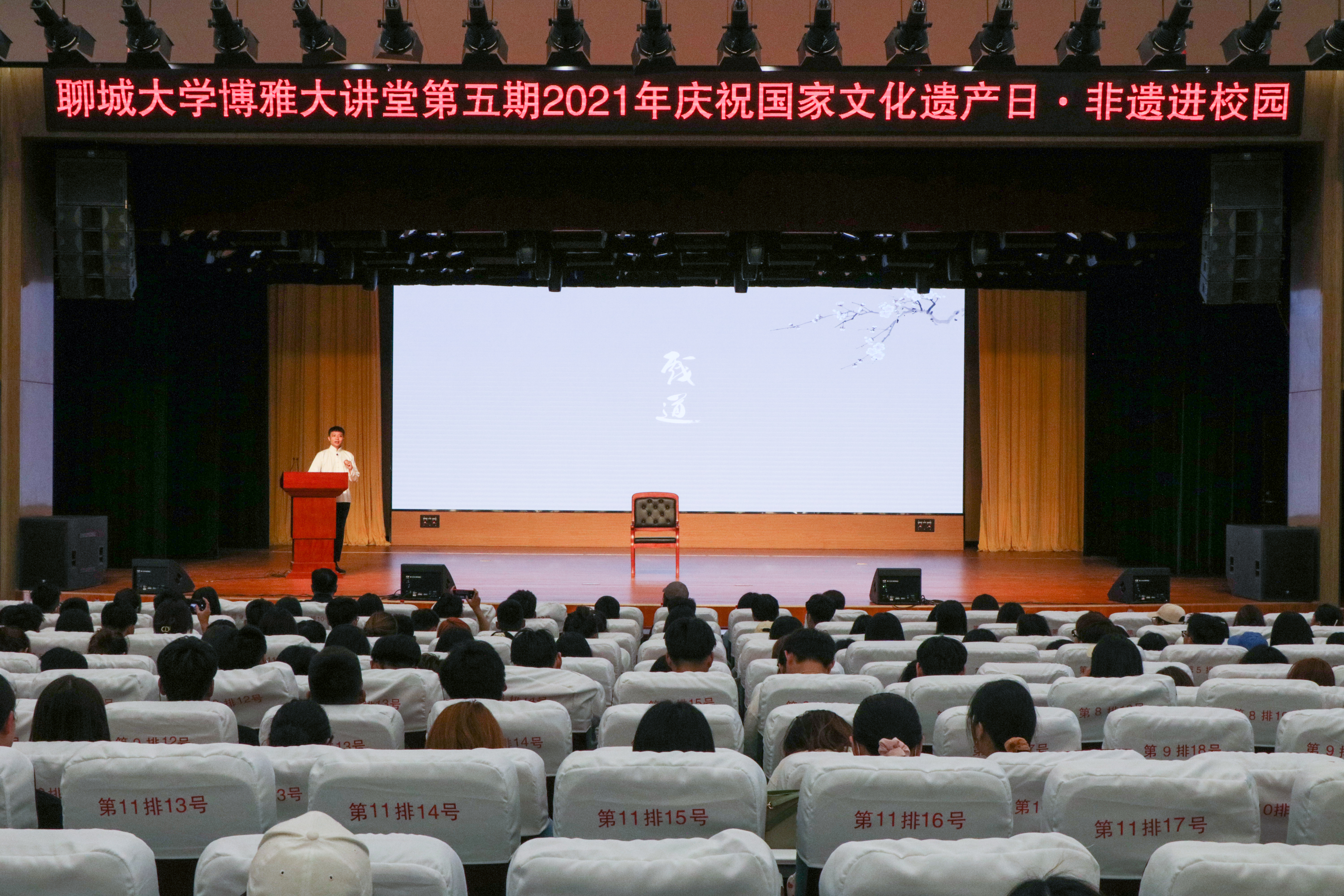 5月25日下午,由山东省艺术研究院、校团委、音乐与舞蹈学院主办的第五期“博雅大讲堂”在西校区礼堂举行。著名戏曲文化传播者金谷担任主讲人,与现场400余名师生一同感受古美戏曲魅力,共享文化盛宴。
