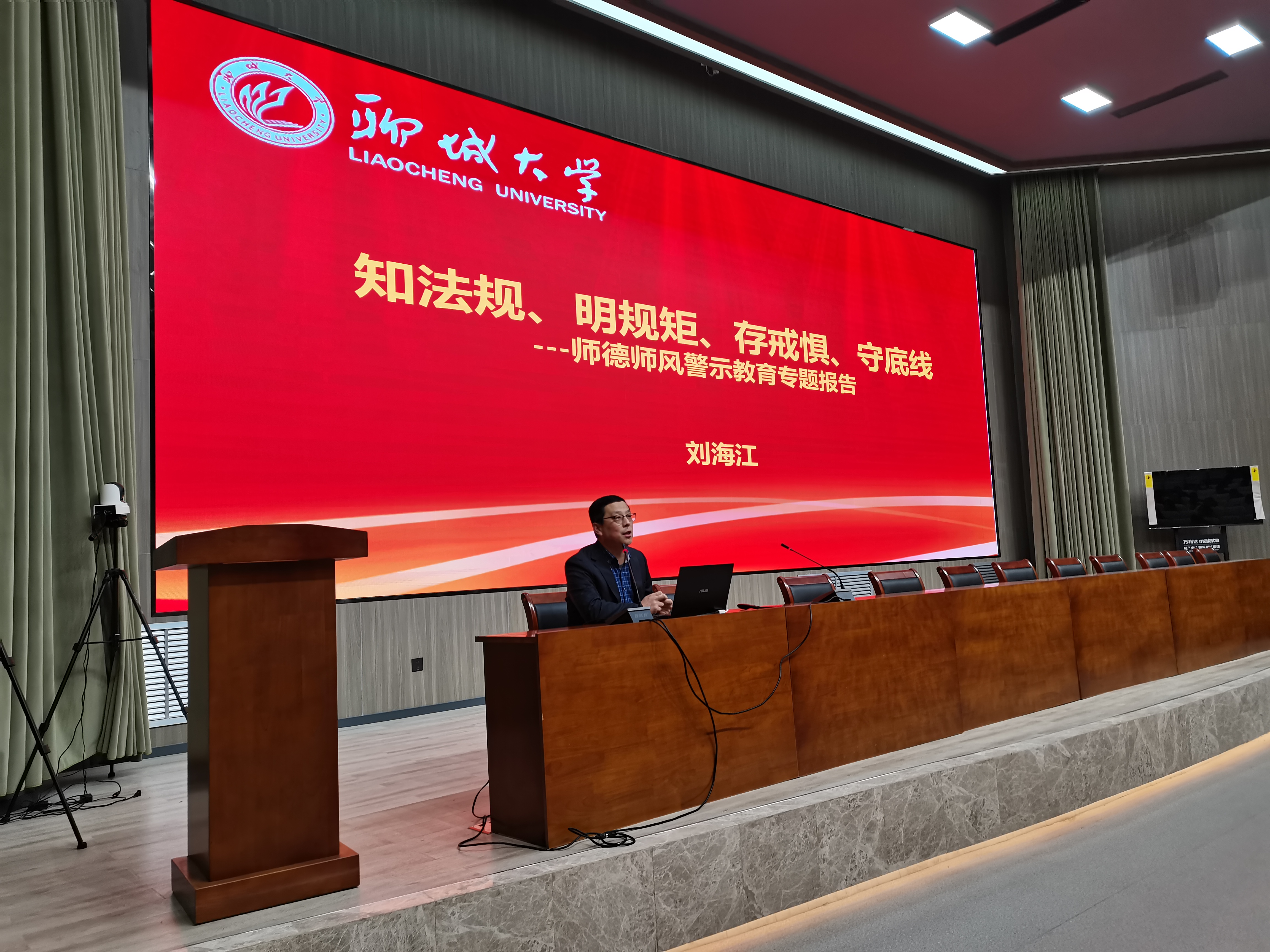刘海江从教师违反教师职业行为的典型案例入手,梳理了学术不端、利用职务之便谋取不当利益、性骚扰、与学生发生不正当关系、发表不当言论、接受学生家长礼品以及酒驾、侵占科研经费等师德失范典型案例,指出了师德失范对自己和他人带来的危害和代价,介绍了高校教师应遵守的法律法规和职业道德底线,教育大家在今后的教育教学中一定要做到自重、自省、自警、自励,以德立身、以德立学、以德施教、以德育德。