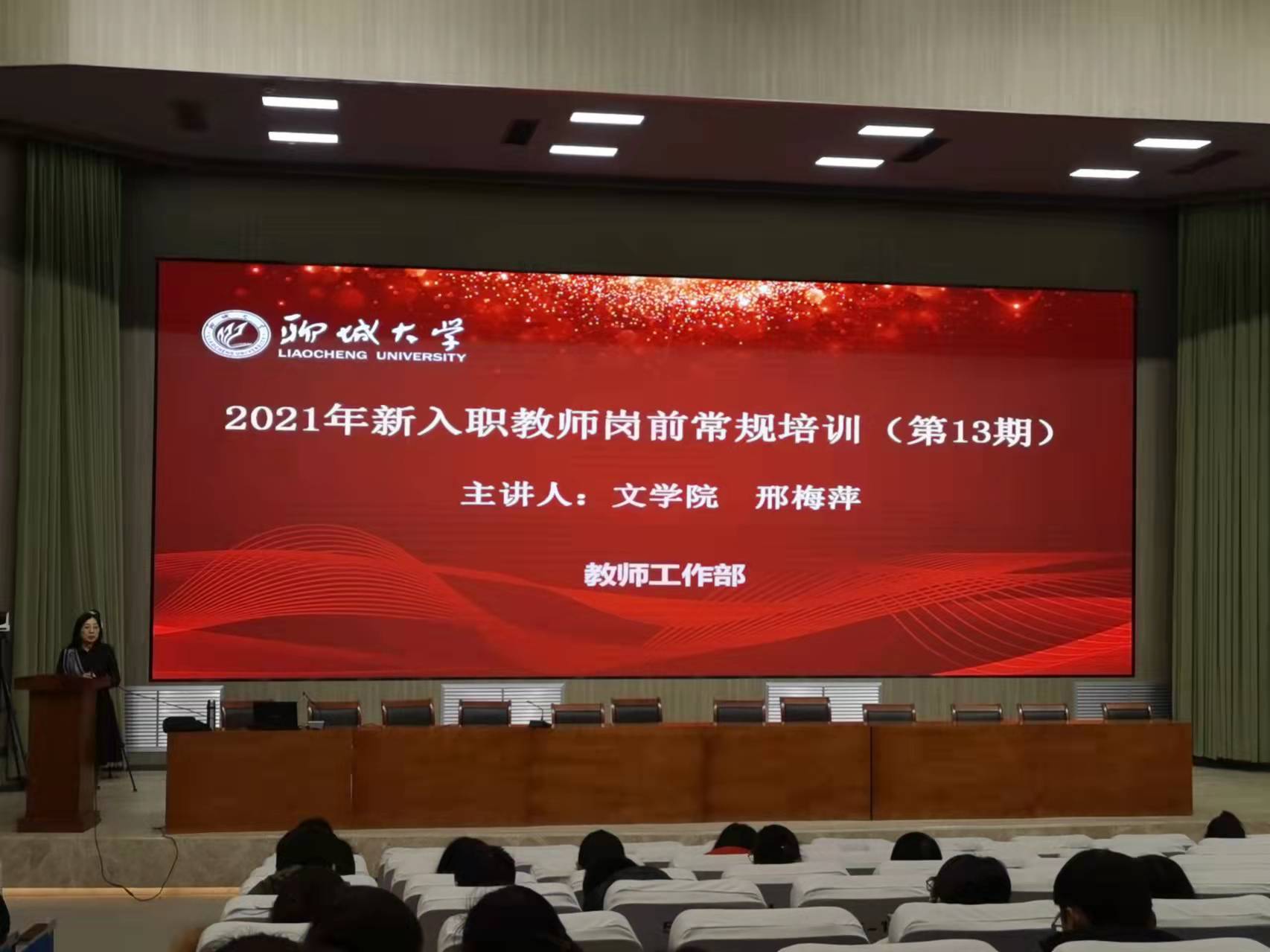 为帮助新入职教师了解课堂教学中应该遵循的语言、行为规范,2021年12月24日,教师工作部在东校区实验实训楼举办新入职教师岗前常规培训(第十三讲)。文学院邢梅萍副教授应邀做了《教学语言与教学艺术》教学讲座,113位新入职教师参加了此次培训。