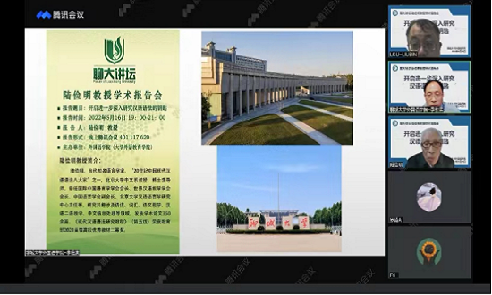 5月16日,北京大学中文系教授、博士生导师陆俭明应邀做客线上聊大讲坛,通过视频会议作了题为《开启进一步深入研究汉语语法的钥匙》的学术报告。报告会由外国语学院主办,吸引了相关领域的专家学者1000余人参加。外国语学院副院长李维滨主持报告会。